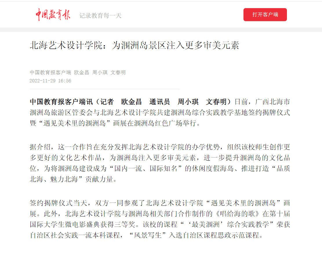 中国教育报:北海艺术设计学院为涠洲岛景区注入更多审美元素