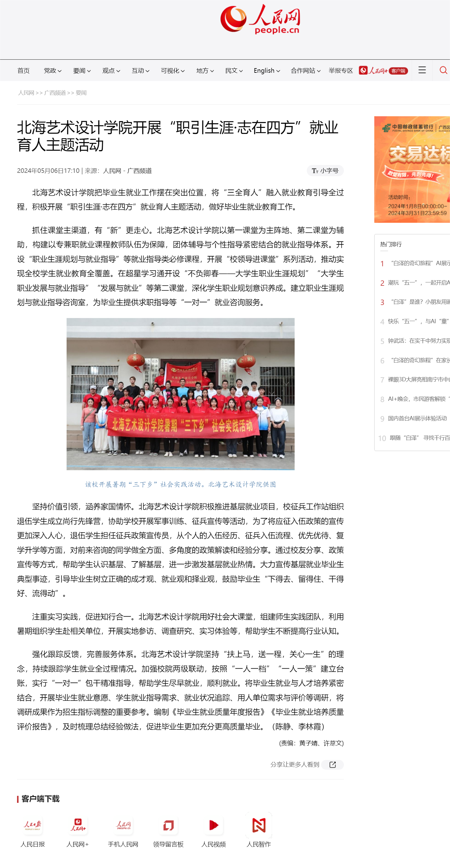 人民网:北海艺术设计学院开展“职引生涯·志在四方”就业育人主题活动