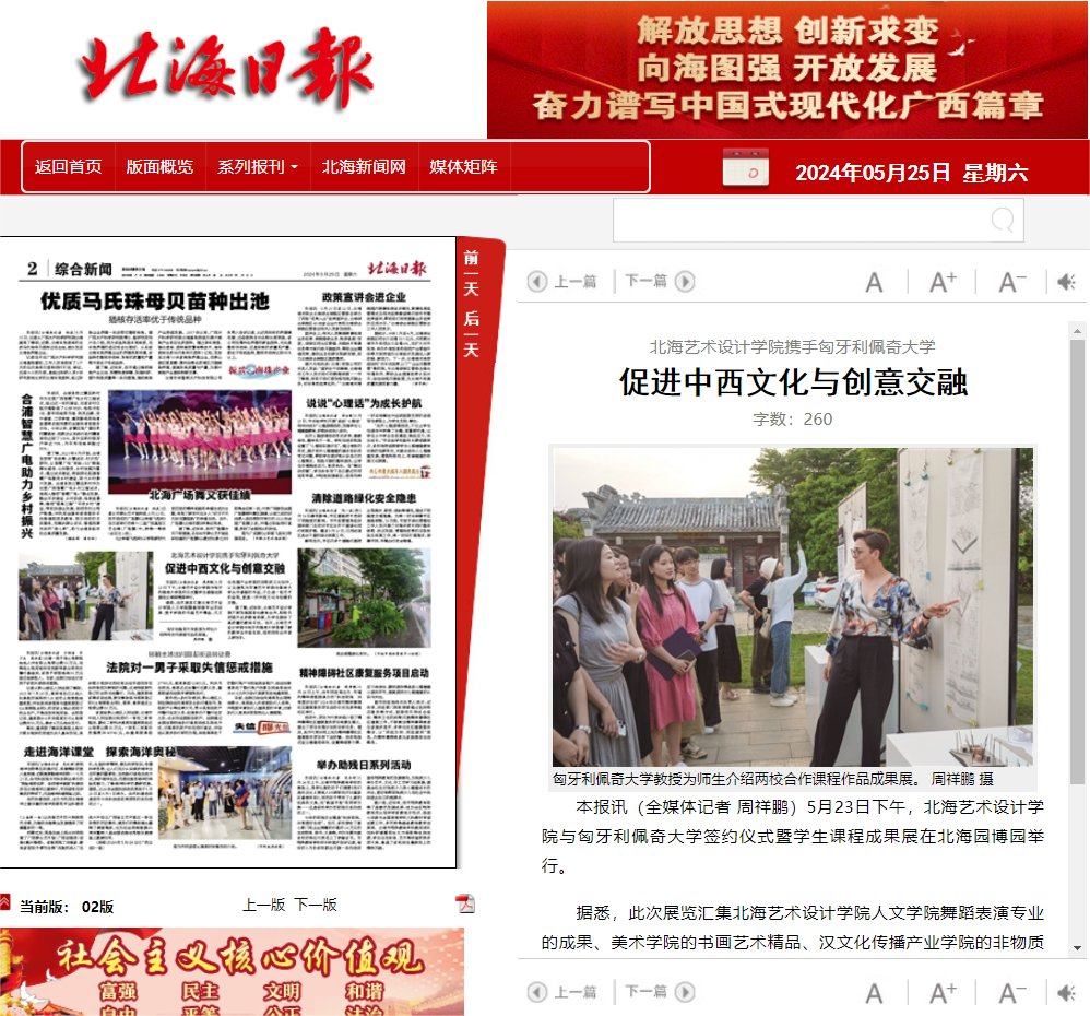 北海日报:北海艺术设计学院携手匈牙利佩奇大学促进中西文化与创意交融
