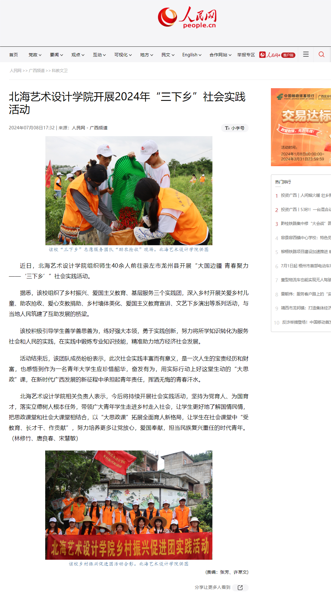 人民网:北海艺术设计学院开展2024年“三下乡”社会实践活动