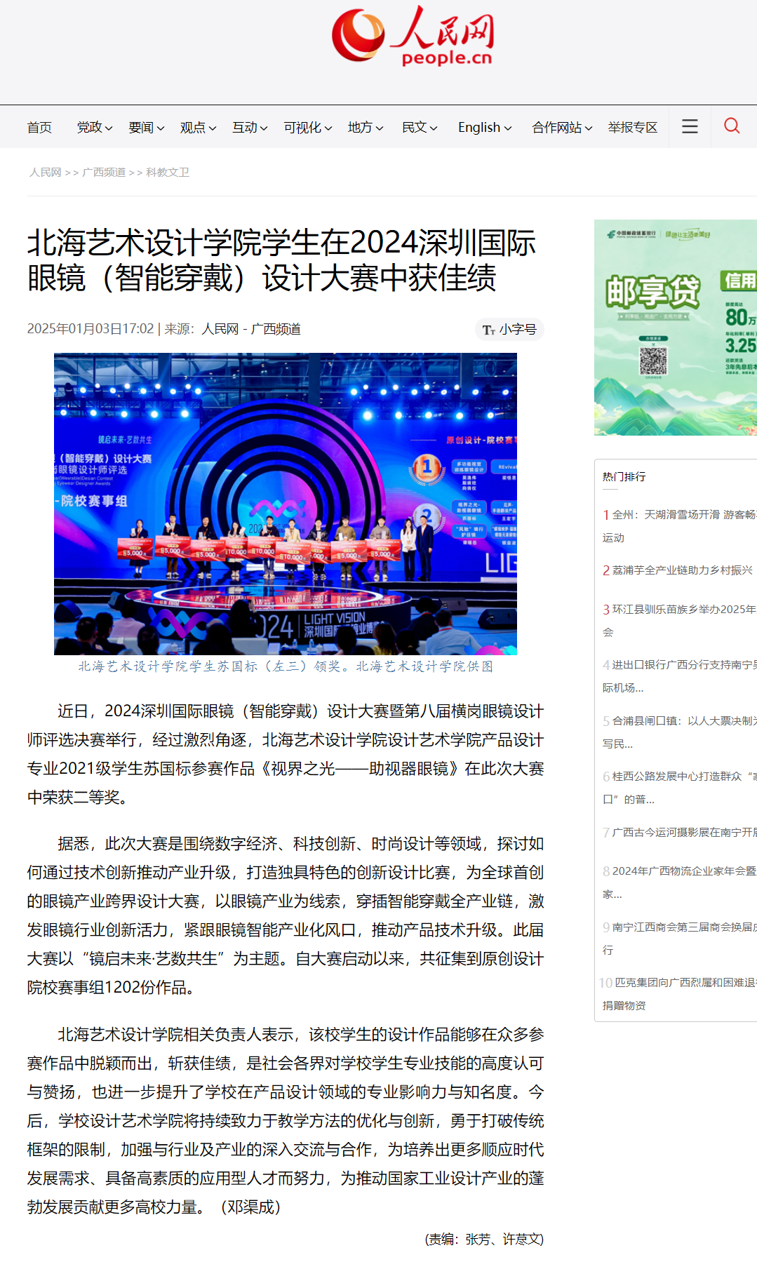 人民网:北海艺术设计学院学生在2024深圳国际眼镜(智能穿戴)设计大赛中获佳绩