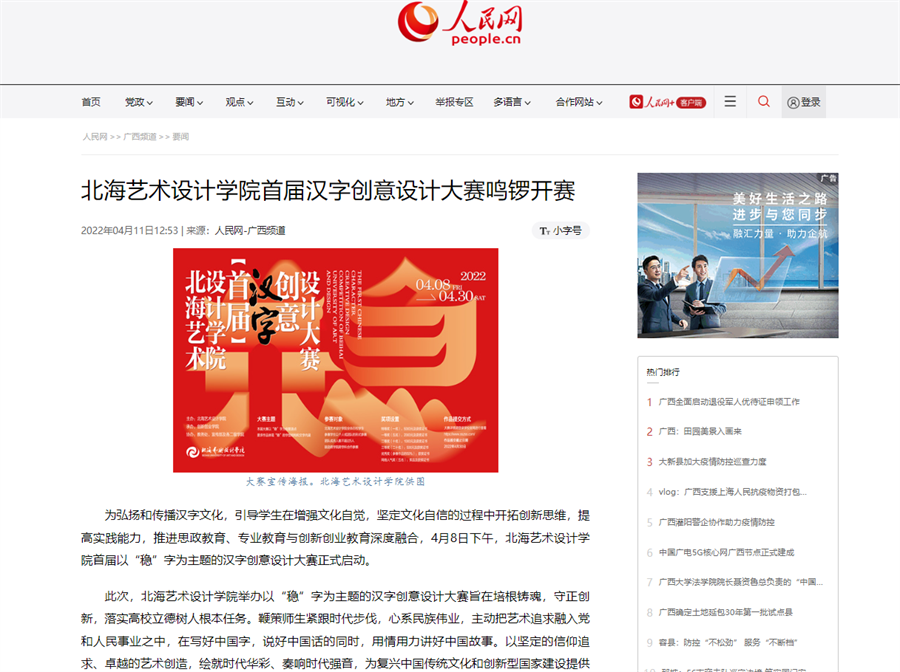 人民网:北海艺术设计学院首届汉字创意设计大赛鸣锣开赛