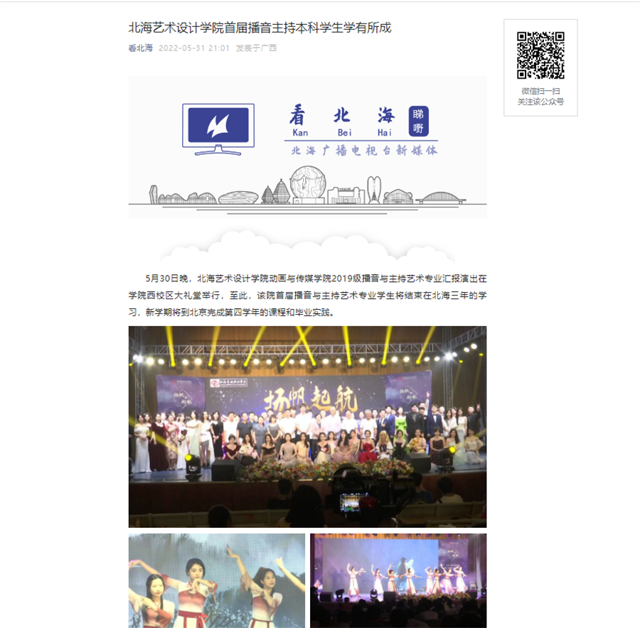 北海广播电视台:关注报道我校首届播音主持本科学生学有所成