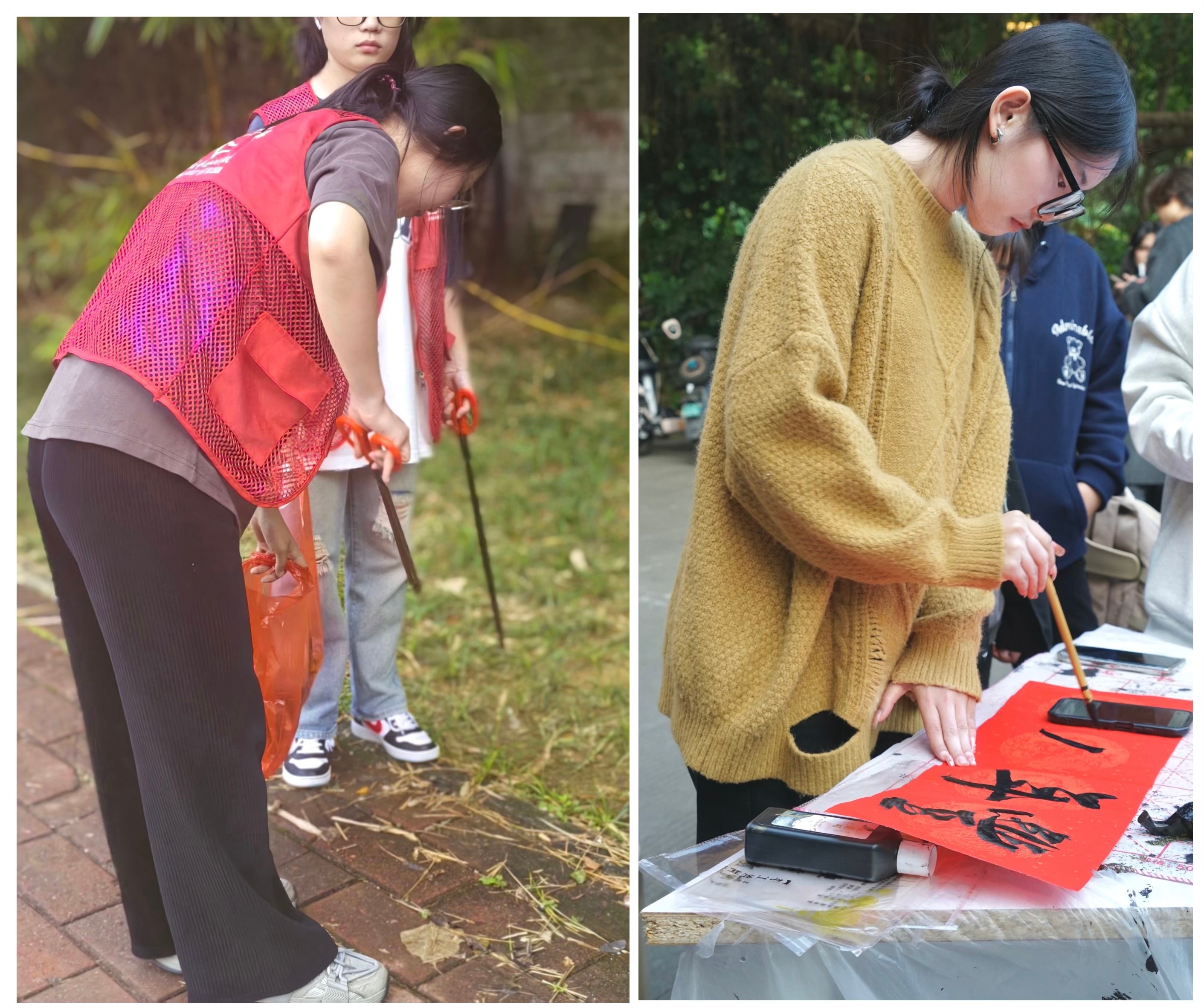 林清瑜实践与理论并重,通过“送春联”书法志愿活动、书法篆刻大赛等丰富实践,在服务社会中锤炼专业能力。累计6次获“优秀志愿者”称号,其书法作品多次在赛事中入展收藏,坚定“以赛促学、以实践强素养”。