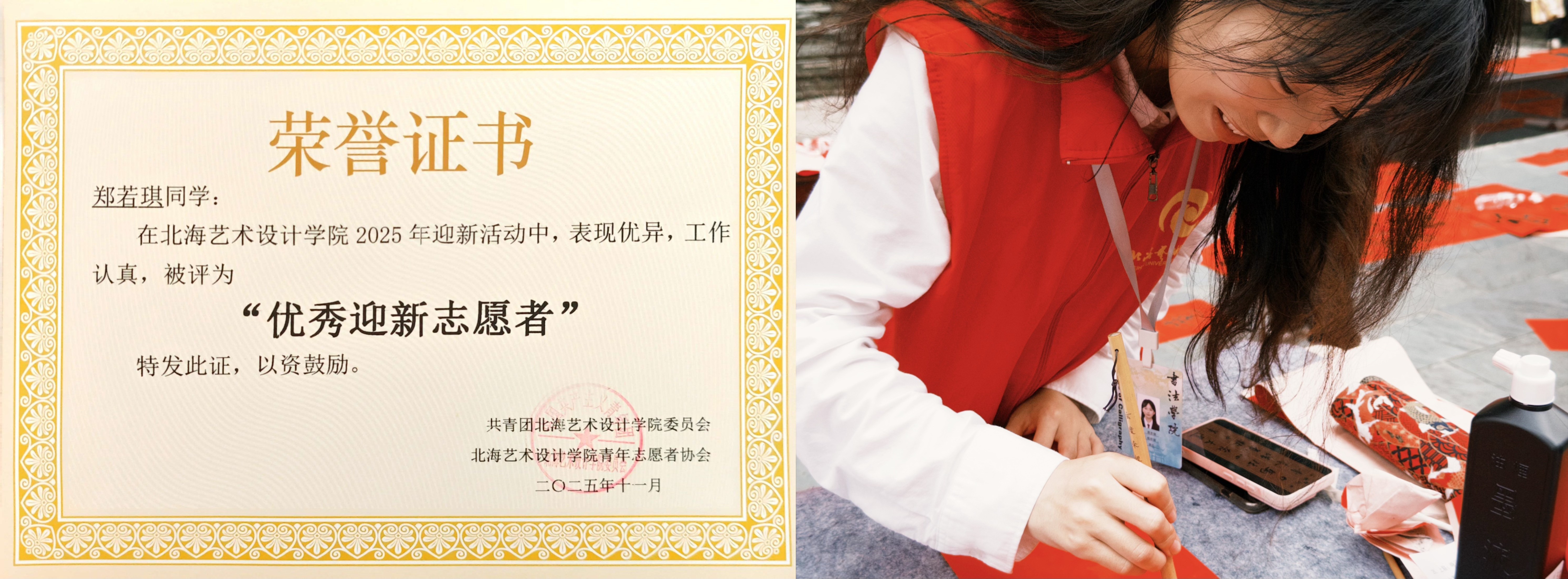 2025年12月,获北海艺术设计学院校级优秀学生干部荣誉称号;