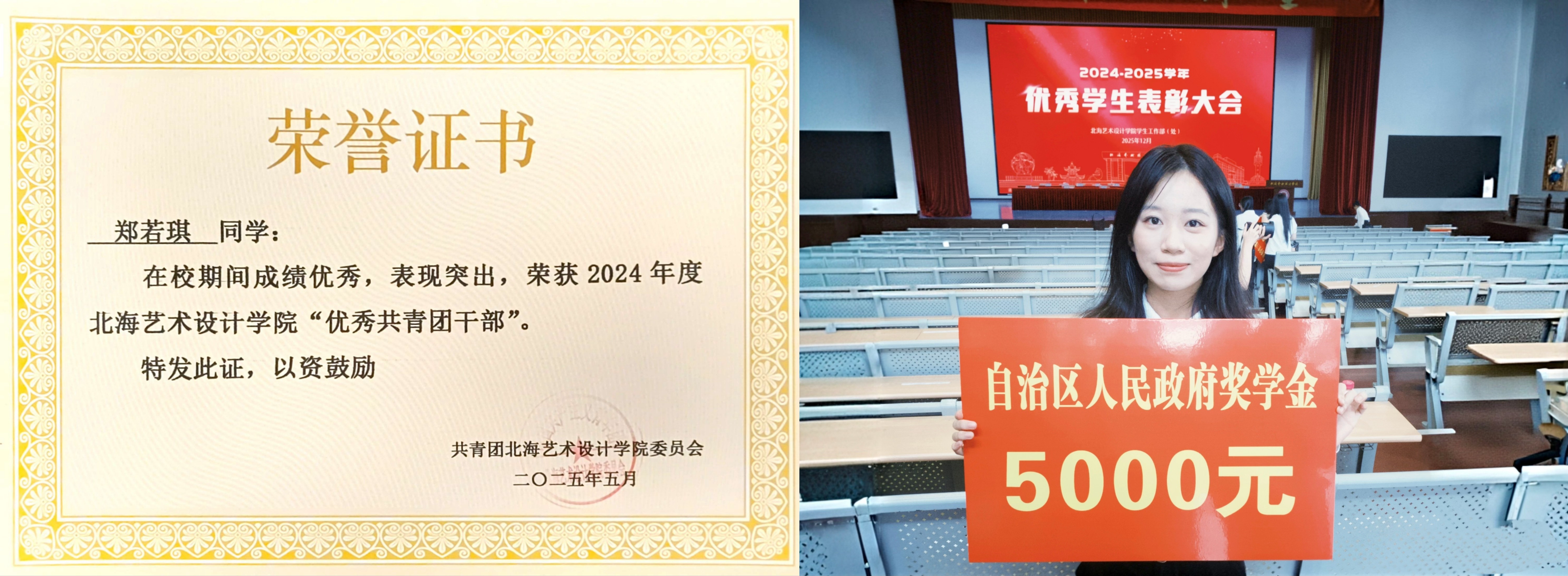 2025年10月,获北海艺术设计学院优秀学生二等奖学金;