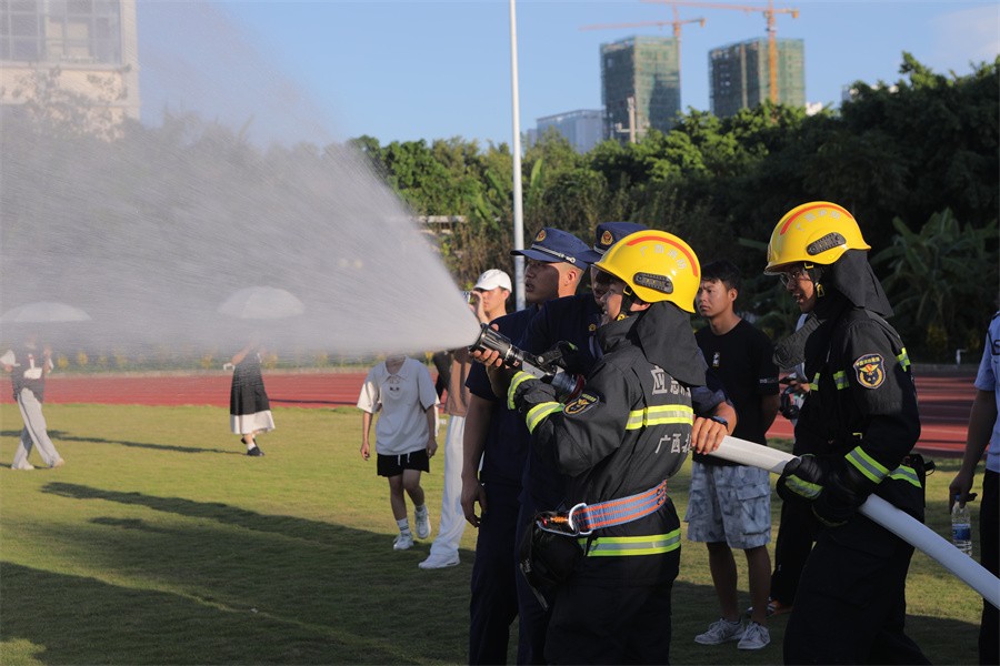演练活动中,2023级学生宿舍长、辅导员、新入职教职工及图书馆、食堂、超市、快递点等消防重点部门单位的教职工约700余人参与消防演练。北海市银海区消防救援大队指战员和学校医务室医生,分别进行了消防常识理论授课和自救互救技能现场演示和技术指导,各学院组织师生到场集中学习消防安全知识,教育引导学生规范日常消防行为习惯。