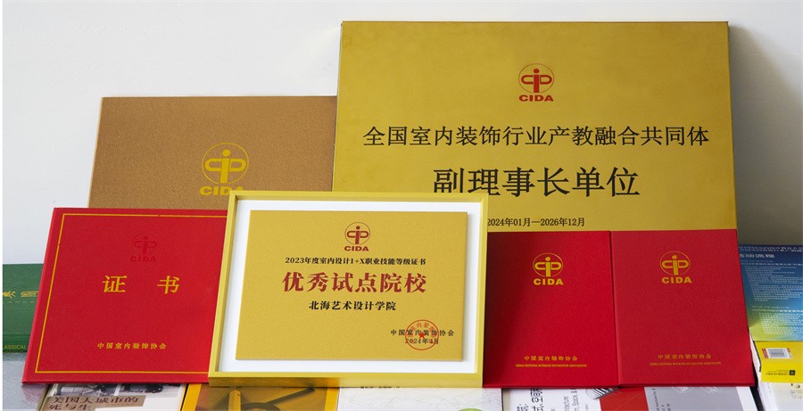 2024中国室内设计教育大会暨全国室内装饰行业产教融合共同体成立仪式于4月11日-12日在哈尔滨举行。我校在此次会议上荣获2023年度全国1+X室内设计职业等级认证优秀试点院校奖和全国室内装饰行业产教融合共同体副理事长单位。