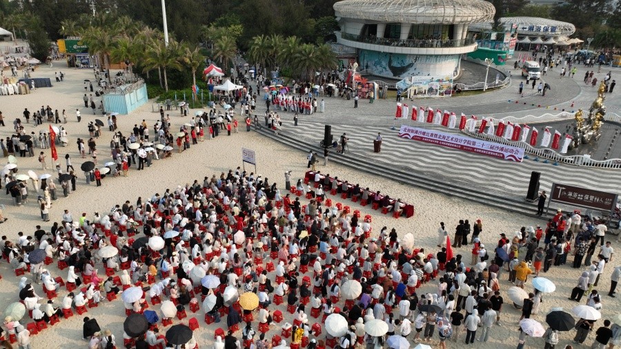 4月10日,北海银滩沙雕比赛暨北海艺术设计学院第二十三届沙滩运动会在银滩秀映潮雕区东侧鱼群广场顺利举行。开幕式现场,彩旗迎风招展,人声鼎沸。北海旅游集团副总经理李小军,北海银滩景区管理有限公司副总经理雷洁,学校党委书记覃宪儒,党委副书记彭仁、刘承初,副校长陶立阳、刘朝雄、包建明,总督学王斌,各部门、各单位负责人及学校师生齐聚银滩参加开幕式。开幕式由副校长何煜主持。
