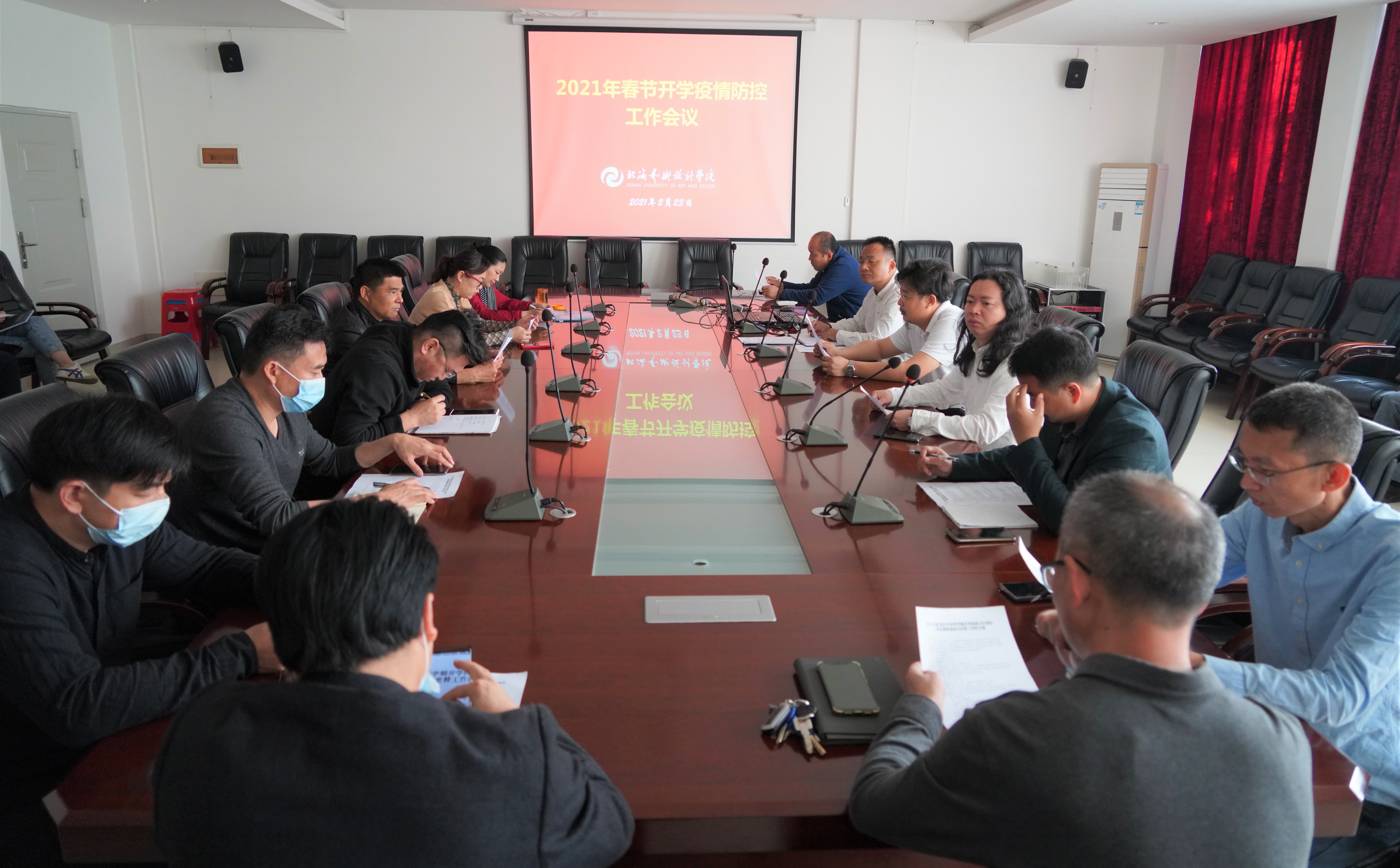 2021年2月23日上午,我校在行政楼会议室召开关于春季开学疫情防控工作会,新冠疫情防控工作领导小组全体成员参加了本次会议。