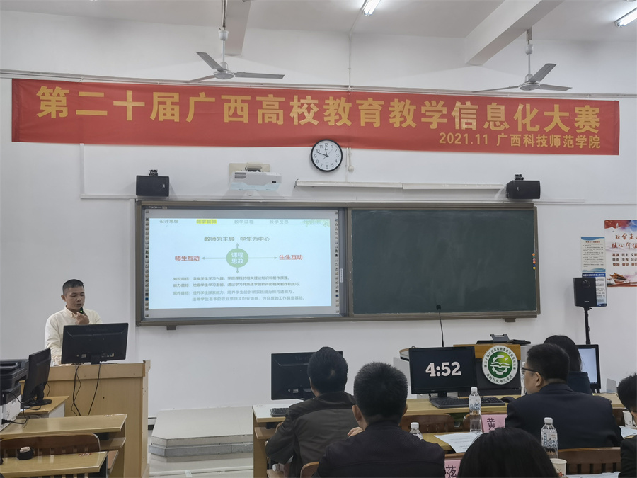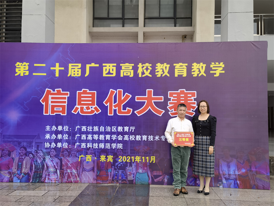 近日,由自治区教育厅主办的第二十届广西高校教育教学信息化大赛在广西科技师范学院落下帷幕。大赛旨在促进我区高校信息技术与教育教学的深度融合,建设优质教育教学资源,提升高校课堂教学的信息技术应用水平。