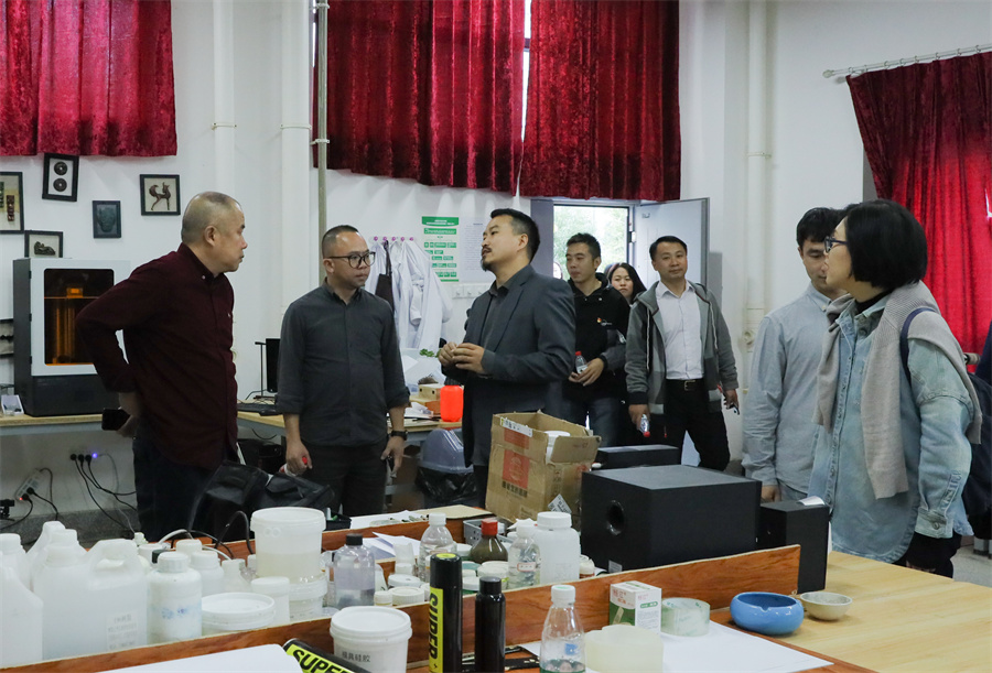 会上,学校双方就课程设置与就业发展等方面进行了更深入的学习交流。会后,百色学院美术与设计学院一行参观学了学校校园环境和各类专业工作室、实训室,充分了解学生上课和实践创作环境。(李斯玥/摄)