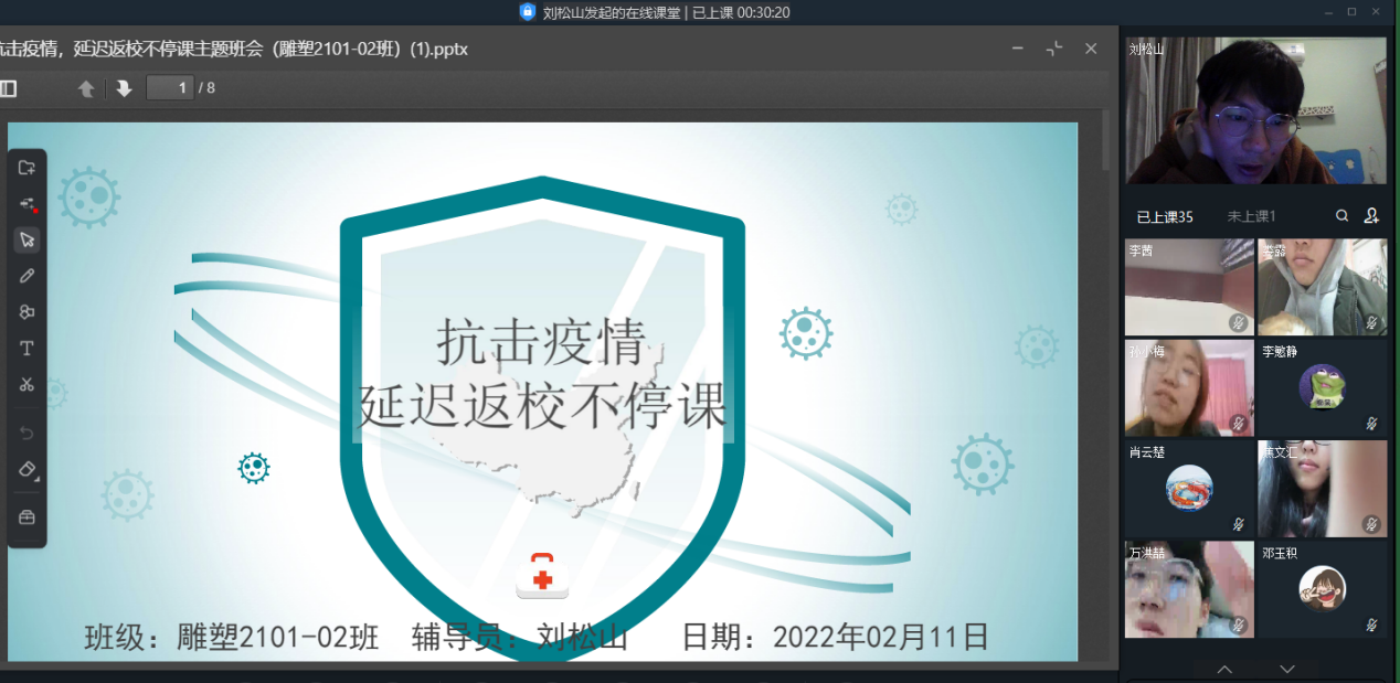 因目前广西区内出现新冠疫情,根据自治区疫情防控指挥部办公室《关于做好2022年春季学期开学返校工作的紧急通知》精神及学校实际情况,经研究决定,我校学生延期返校。对此,我院各班开展了抗击疫情延迟返校线上班会。班会内容如下: