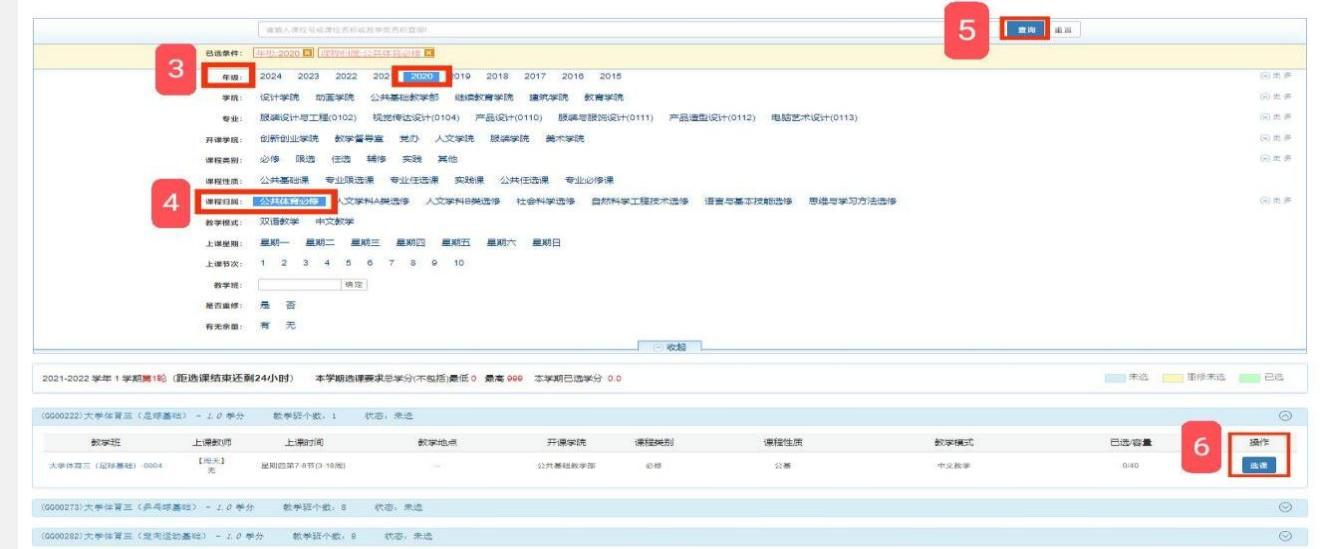 网上选课按照“初选、次选和退补选”3个步骤完成。每位学生仅可选择大学体育三)课程的一个项目。注意选择的上课时间避免与本人其他课程安排发生冲突