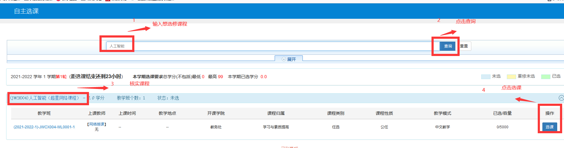(四)珍惜教学资源,选课过程一旦结束无特殊原因不得退选,也不得无故旷课。选课结束后,所有同学务必修完所学课程,中途放弃的课程期末成绩计为“0”分。