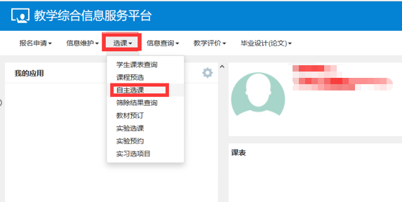 用浏览器打开北海艺术设计学院教务处网站https://jwglxt.sszss.com:8443/jwglxt/xtgl/login_slogin.html(推荐使用IE、QQ或360浏览器);依次点击“教务管理系统(学生入口)”——输入用户名和密码登录——点击“选课”——“自主选课”——“查询”等(可以跨校区选课)——“选课”。