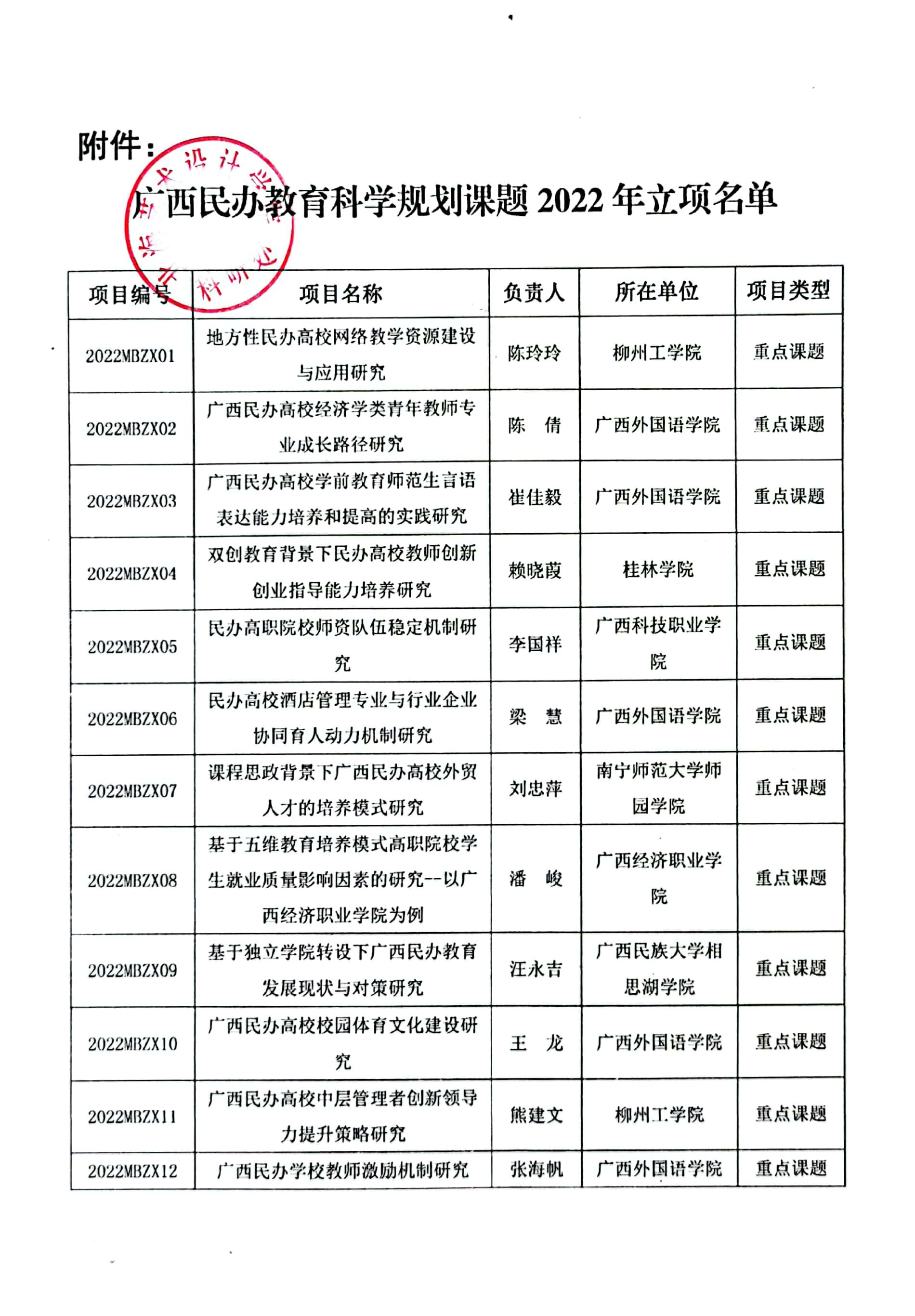 关于公布2022年广西民办教育科学规划课题立项名单通知文件