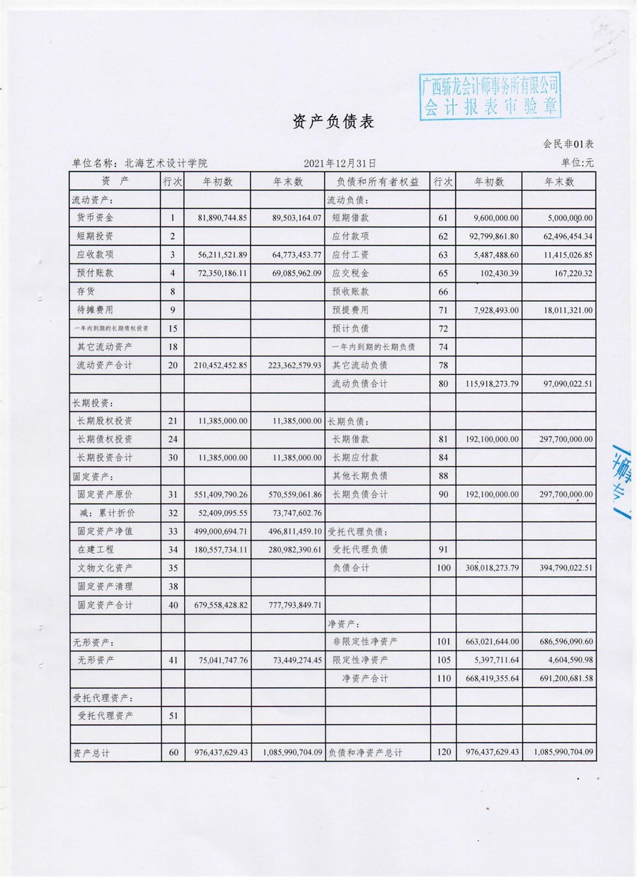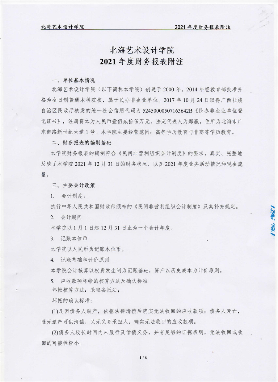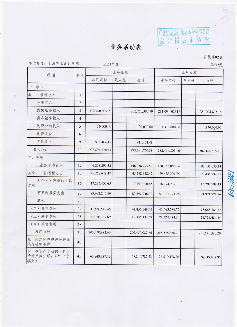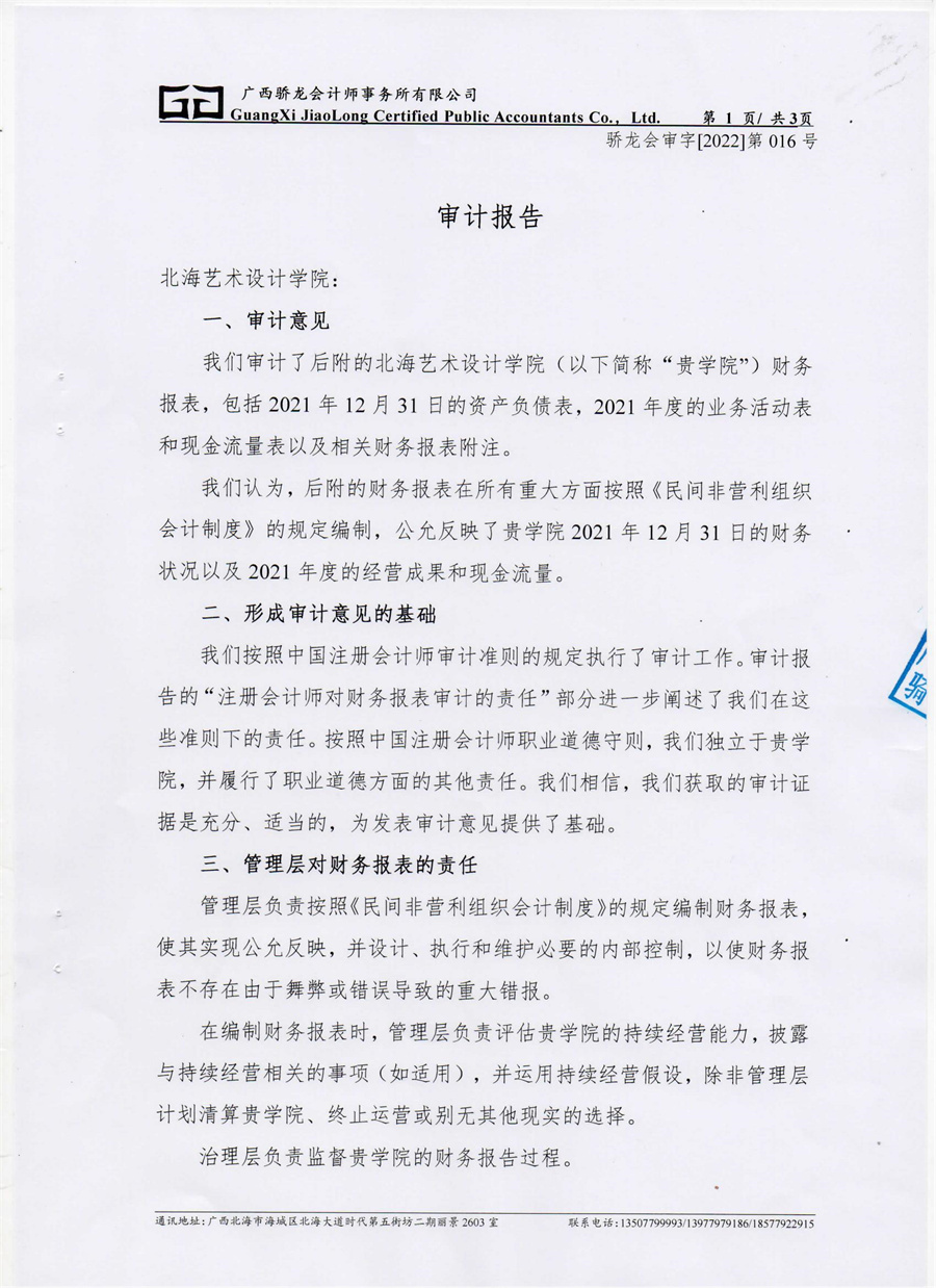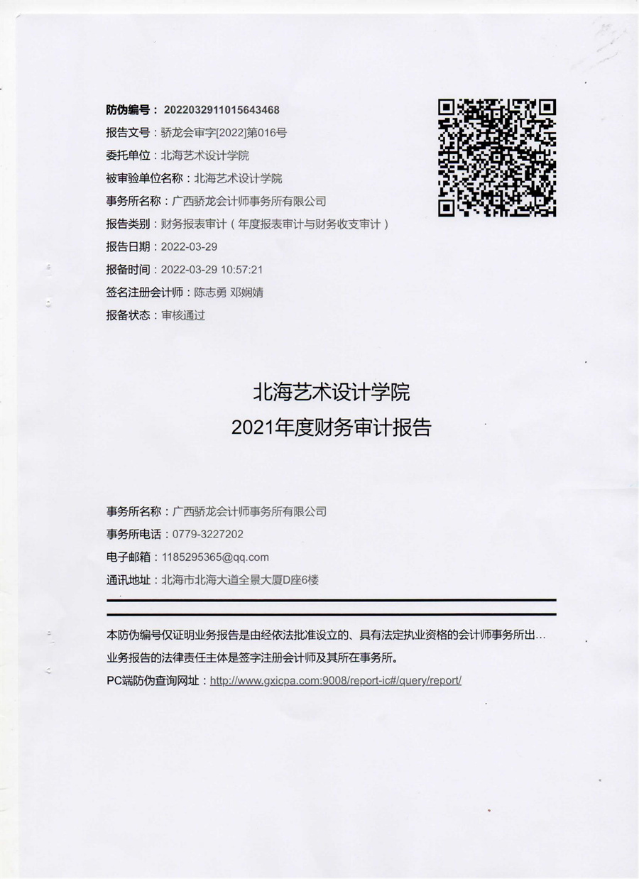 北海艺术设计学院2021年度财务审计报告