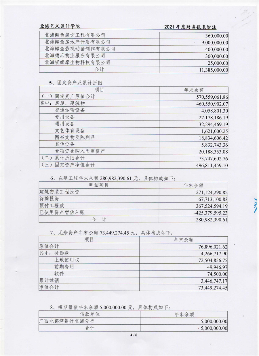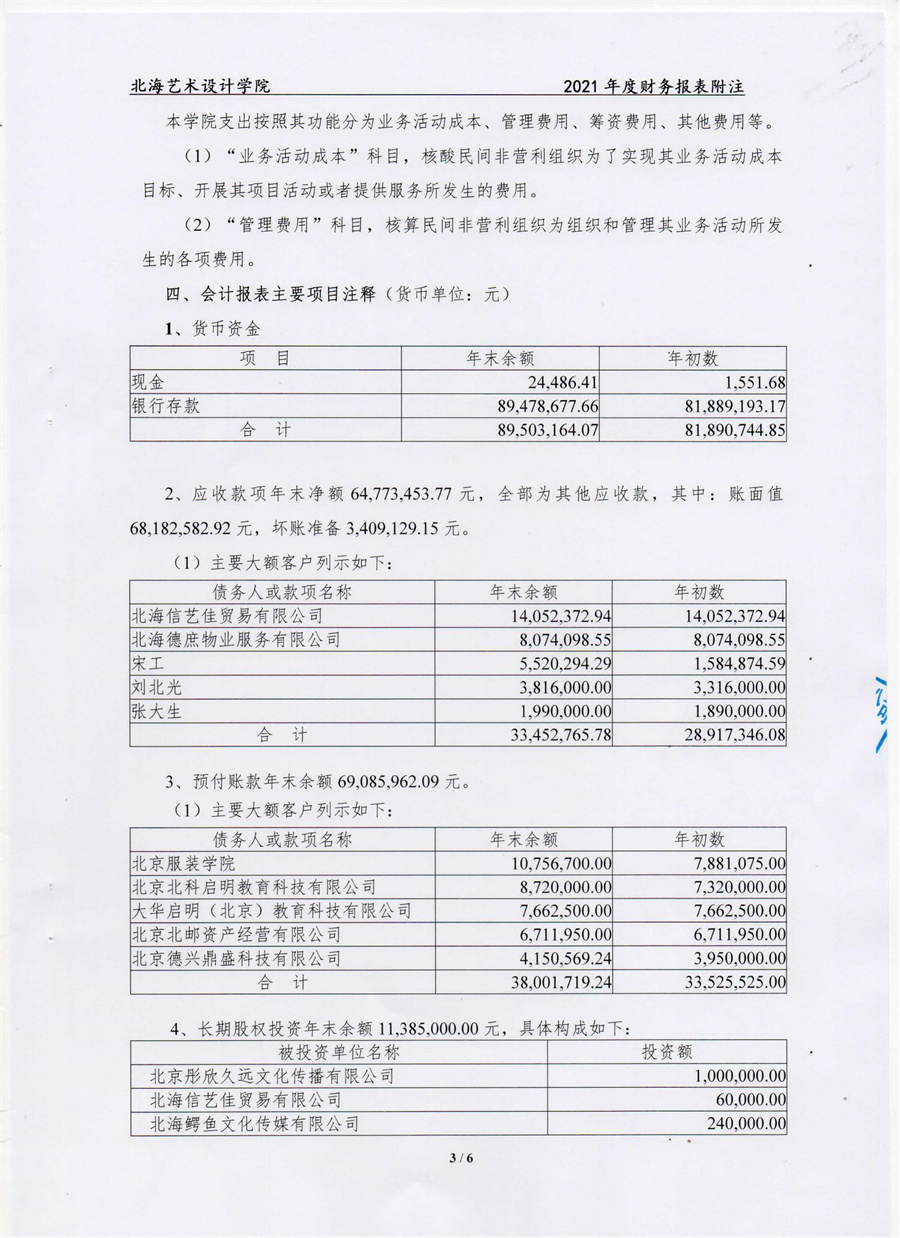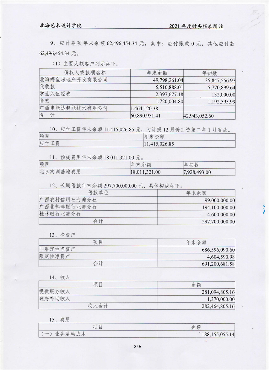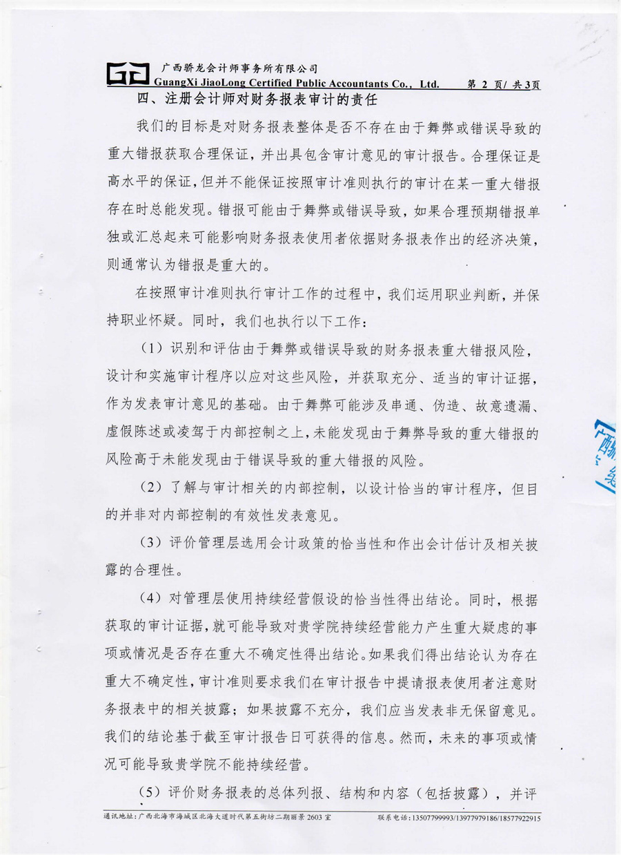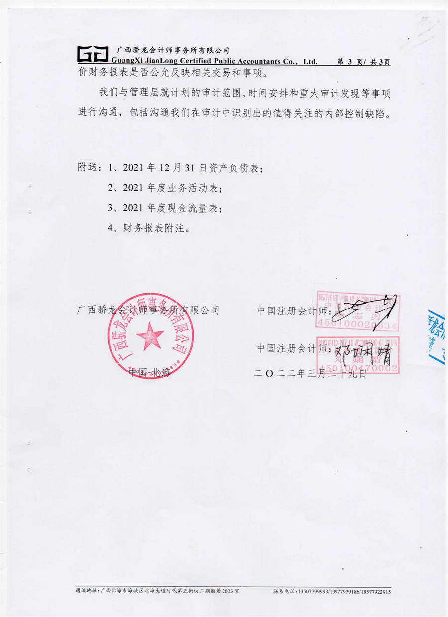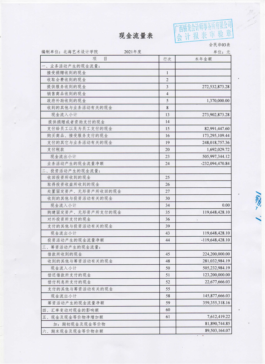 北海艺术设计学院2021年度财务审计报告