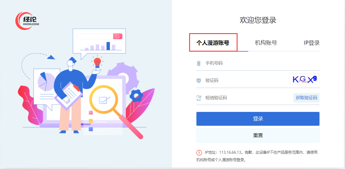 1. 因校园网外打开经纶平台网址:http://k.vipslib.com/ ,无法自动识别登录,如您已注册过个人账号,请使用个人漫游账号登录,如为注册过请选择机构账号登录,并输入学校机构账号:bhyssjxy,密码:bhyssjxy2022,即可登录,登入过后右上角会显示学校名称。