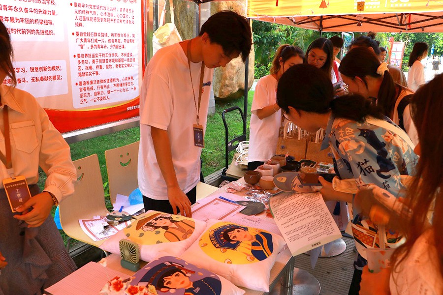 时近仲夏,踩着五月的尾巴,由设计艺术学院分团和人文教育学院分团共同举办的“艺”想“添”开主题活动于2022年5月27日圆满结束。此次活动为期两天,以“科技创新创业+以物换物+爱心捐赠”形式展开,又划分了四个活动专区:手工专区、互动专区、爱心义卖专区和毕业捐赠专区。同时为方便同学们了解活动分区特别设置了咨询台活动最终的全部收益和售卖后剩余产品,将以学校和参与师生名义一起捐往河池市大化瑶族自治县安置区