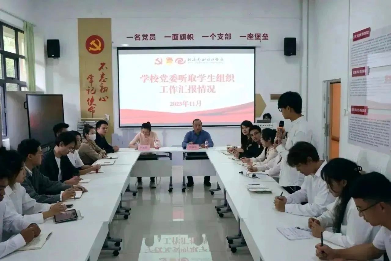 我校党委听取学生组织工作汇报座谈会在11月24日于行政楼103会议室召开,校党委书记范徽忠出席会议并讲话,校团委书记唐良春及各二级学院分团委书记,校团委、各分团委团干、团员代表共30余人参与会议。会议由校团委副书记宋慧敏主持。