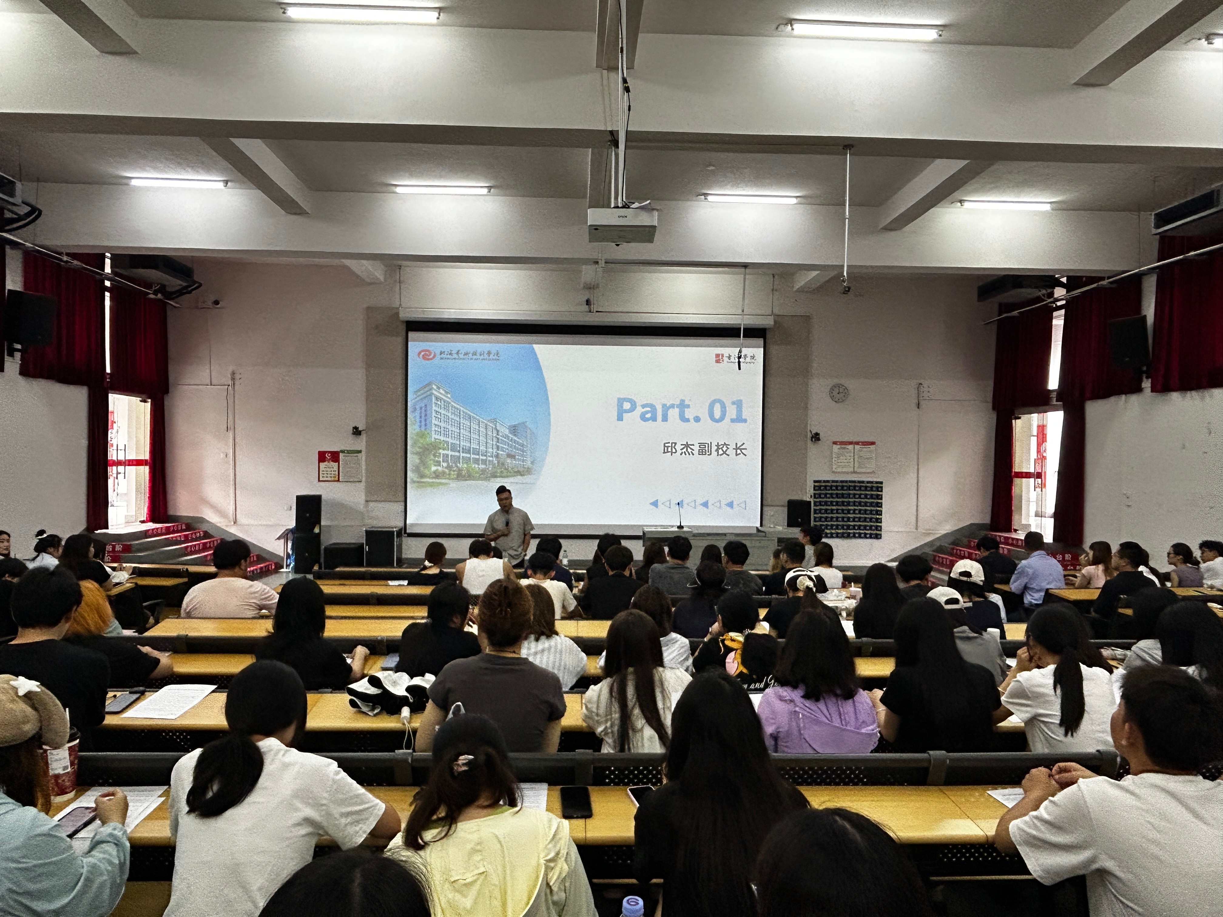会上,邱校长做了慷慨激昂的动员讲话,为同学们讲述了我校“3+1”(北海+北京)培养模式的必要性,并详细的为同学们讲诉了大四期间可以依托北京政治、经济、社会、文化、艺术的资源优势,去感受国际大都市先进文化,进入名企实践实习,开拓学生艺术创作视野,完成专业实践课、专业考察、毕业实习、毕业设计(论文)等综合专业实践环节。