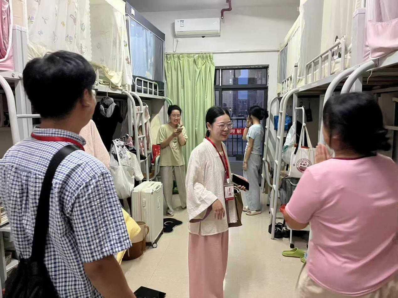 走访期间,学院领导与学生亲切交谈,详细询问学生关于住宿适应、日常作息、专业学习等情况,暖心拉近师生距离。学院领导仔细查看宿舍居住环境,叮嘱学生增强安全意识,保持宿舍环境干净整洁,养成良好的生活习惯。同时,强调寝室不仅是休憩的港湾,更是切磋琢磨的第二课堂。鼓励同学们将书法融入日常,在互帮互学中共同进步,营造翰墨飘香的寝室文化。