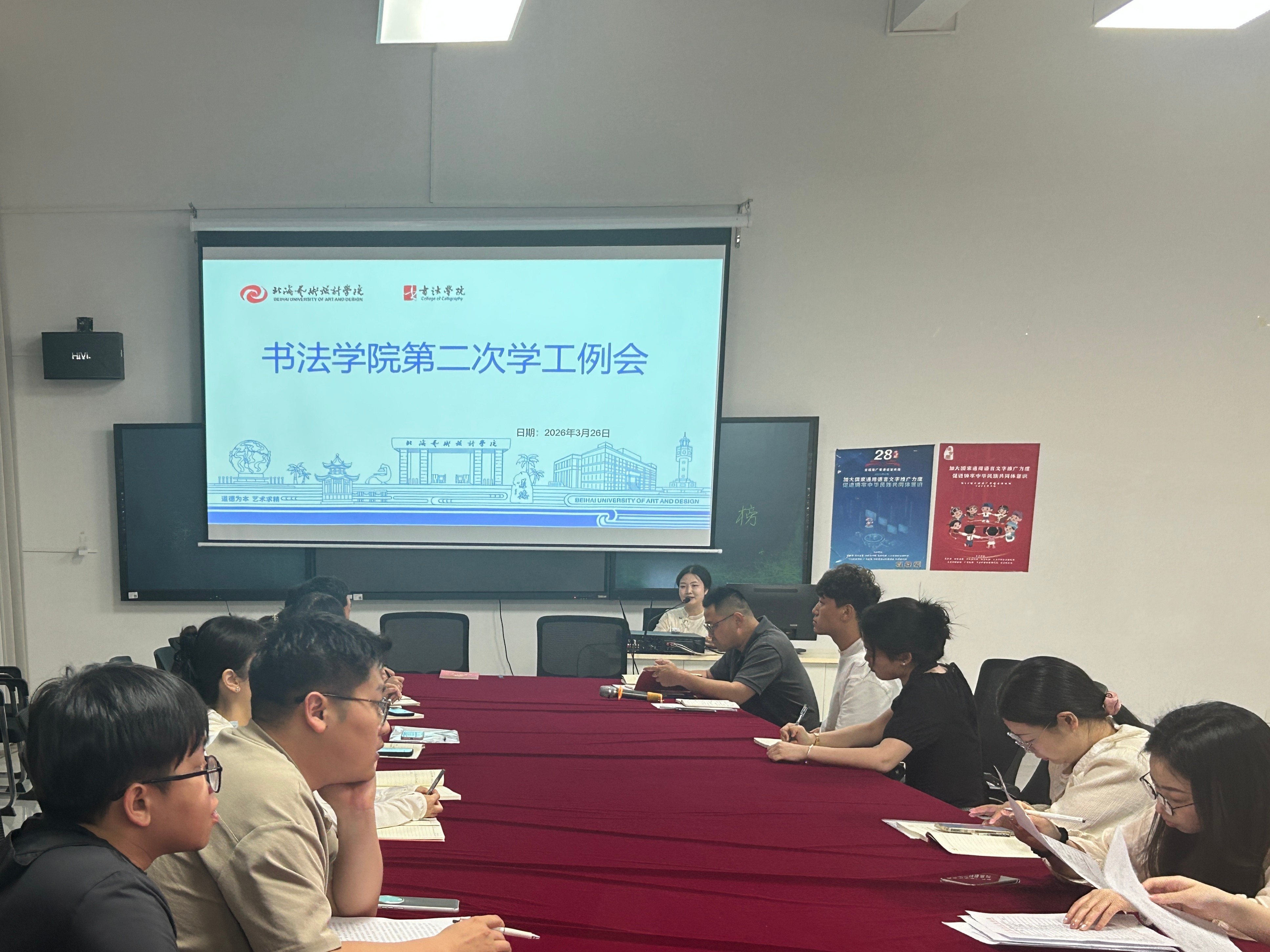 为进一步提升学生工作管理效能与服务温度,保障各项事务平稳有序推进,3月26日下午,书法学院在艺德楼507书法教研室召开2026年春季学期第二次学工例会。书法学院党支部书记喻广林、副书记左云飞、副院长李家琪、办公室主任胡慧捷及全体辅导员参加会议。会议由胡慧捷主持。