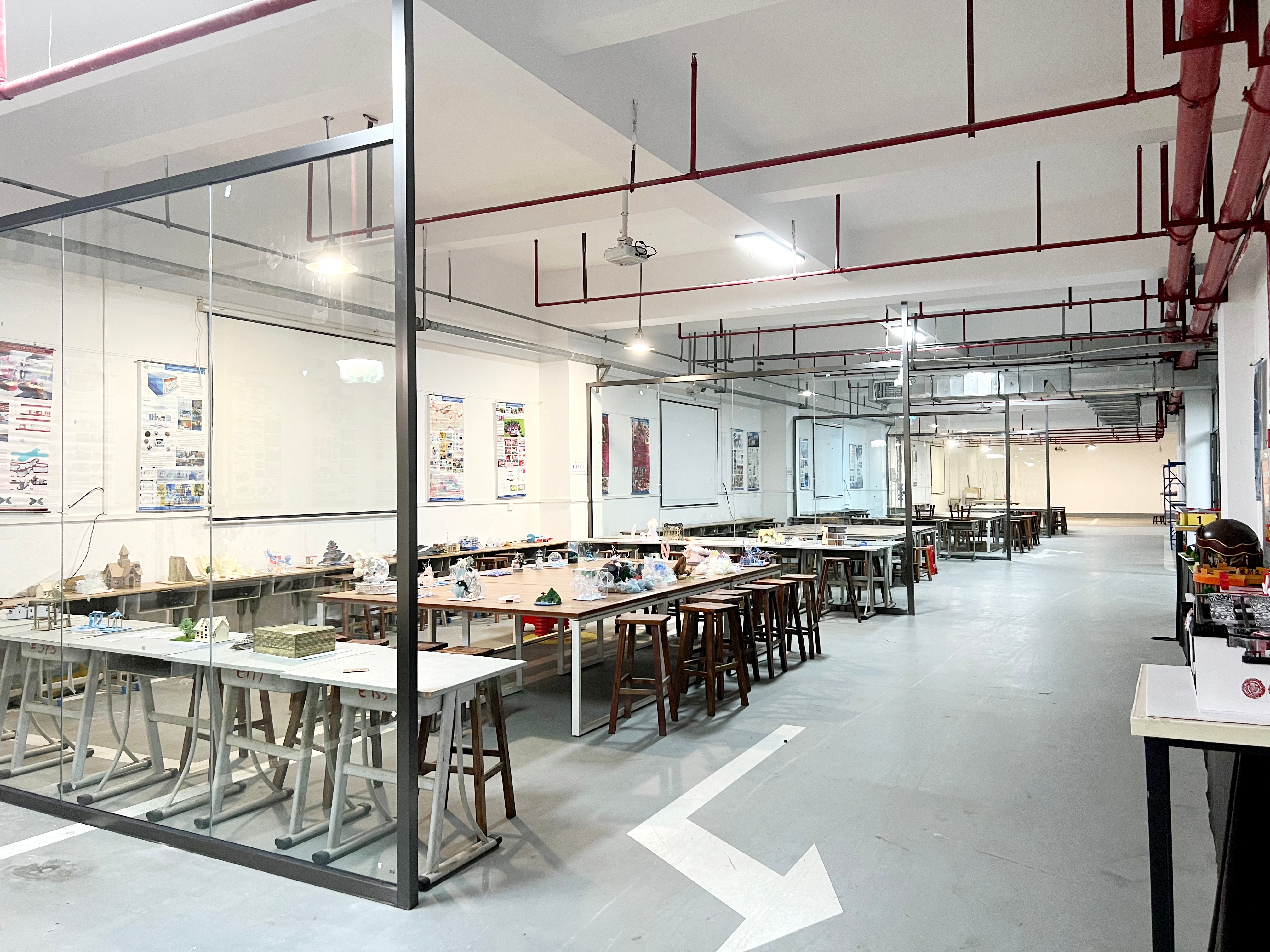该模型工坊专门服务于环境设计专业实验教学、实践工作。主要服务的设计课程:展示空间设计、陈设设计、景观设计、家具设计、创新创业课等;用于承担本专业的实验项目有展示空间模型制作、陈设设计模型制作、家具模型制作、景观模型制作、创业启蒙、创新创业实践等创新创业实验项目等。