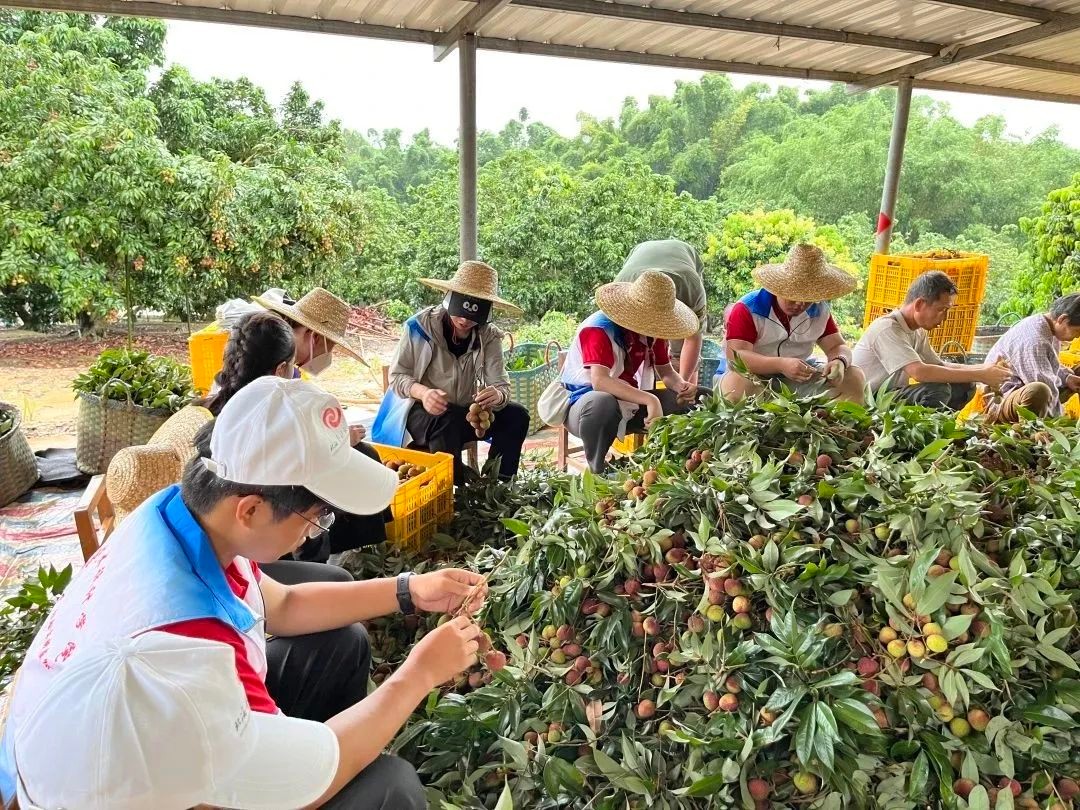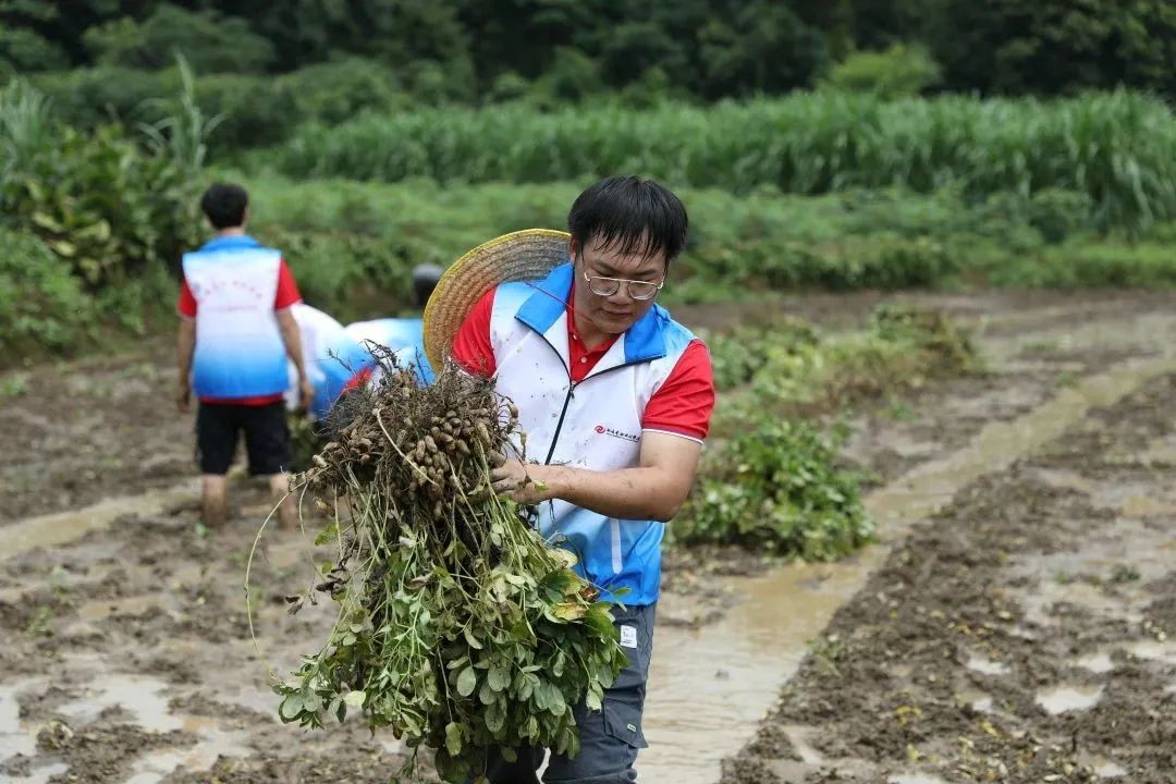 志愿者们分为两队,一队开展了助农采摘打包荔枝,另一队走到田地采摘花生,从源头了解花生的生长,亲身体会当地农民劳作的艰辛。