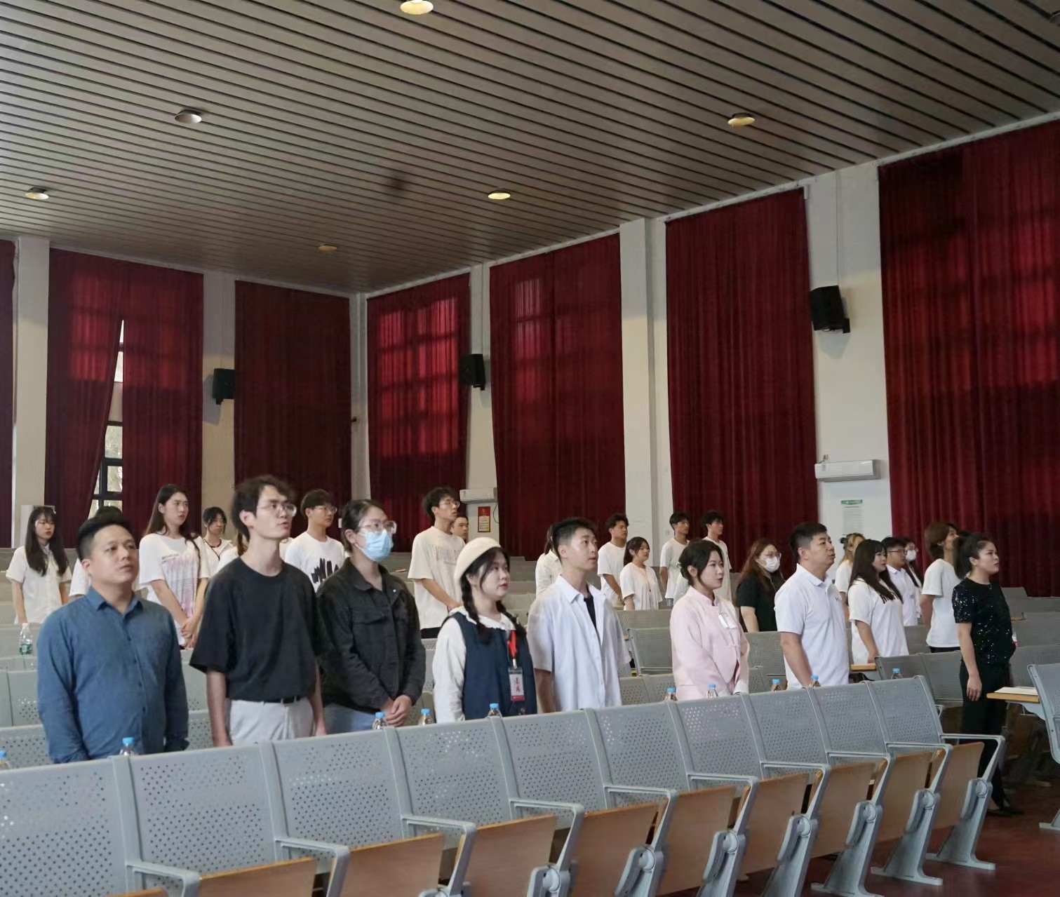 全体起立,奏唱国歌