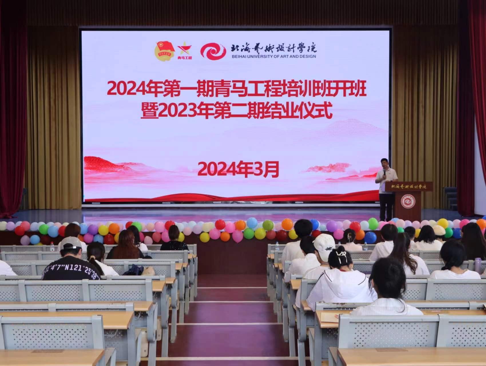 为深入贯彻落实习近平新时代中国特色社会主义思想和党的二十大精神,持续推动学校“青马工程”提质扩面,培养坚定可靠、堪当重任的青年政治骨干。3月29日,我校在西区大礼堂举行2024年第一期青马工程开班暨2023年第二期结业仪式,学校党委副书记彭仁,校团委全体老师,各二级学院分团委书记以及校级青马班学员、团学骨干代表参加会议。