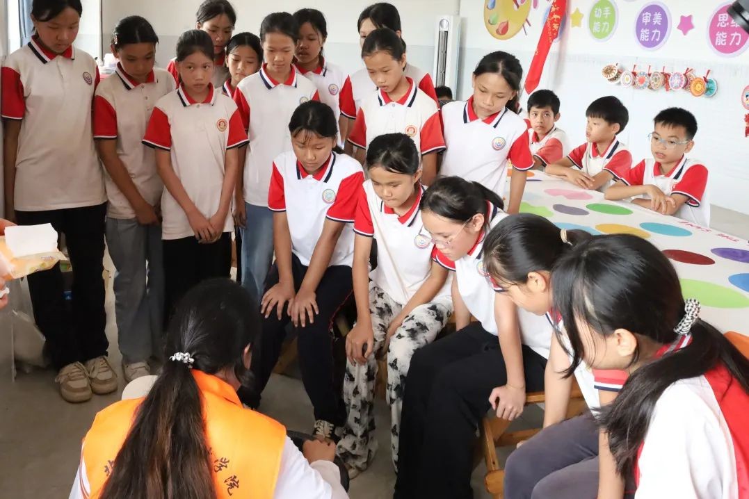 6月17日-19日下午,基层服务践行团在崇左市下冻镇北耀完全小学开展了口才课、手工课、舞蹈课、美术课、音乐课等丰富多彩的课程,同学们将自己所学的专业知识技能教授给北耀完全小学的孩子们,为边陲小学的孩子们带去别具一格的艺术课堂。