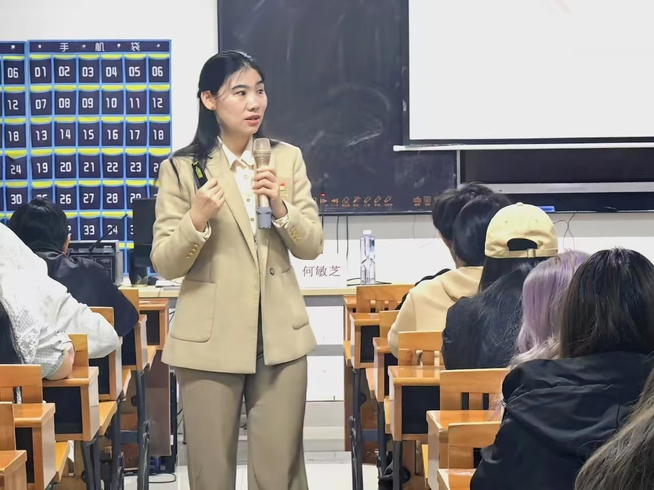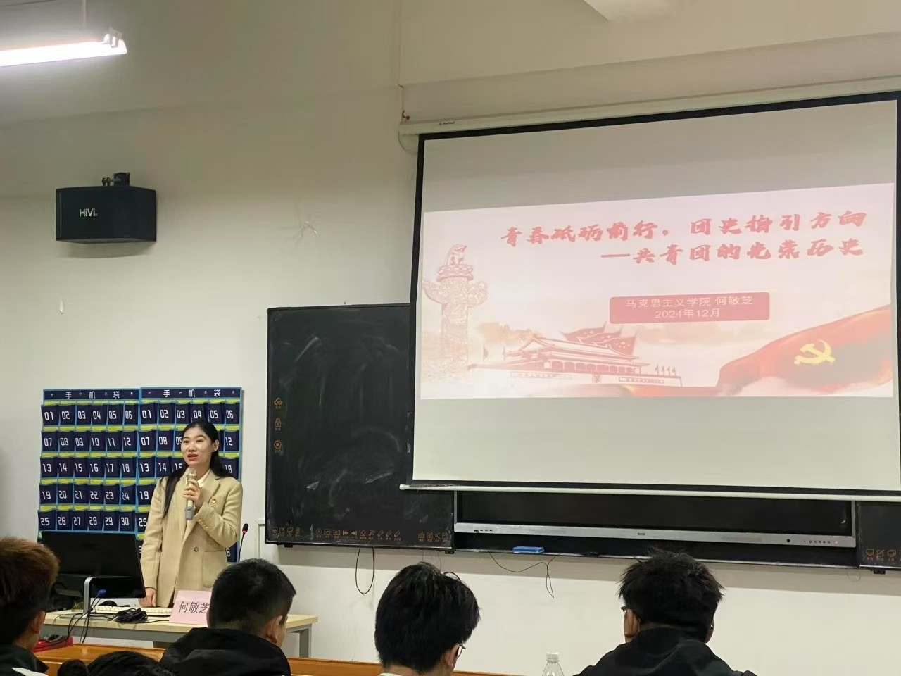 随后,马克思主义学院讲师何敏芝强调马克思主义是我们立党立国、兴党兴国的根本指导思想,详细讲述了中国共青团的发展历程,并对青年大学生们日后的实践工作做出指导,为同学们学习及工作实践指明了奋斗方向,鼓励同学们开阔思维、大胆创新。