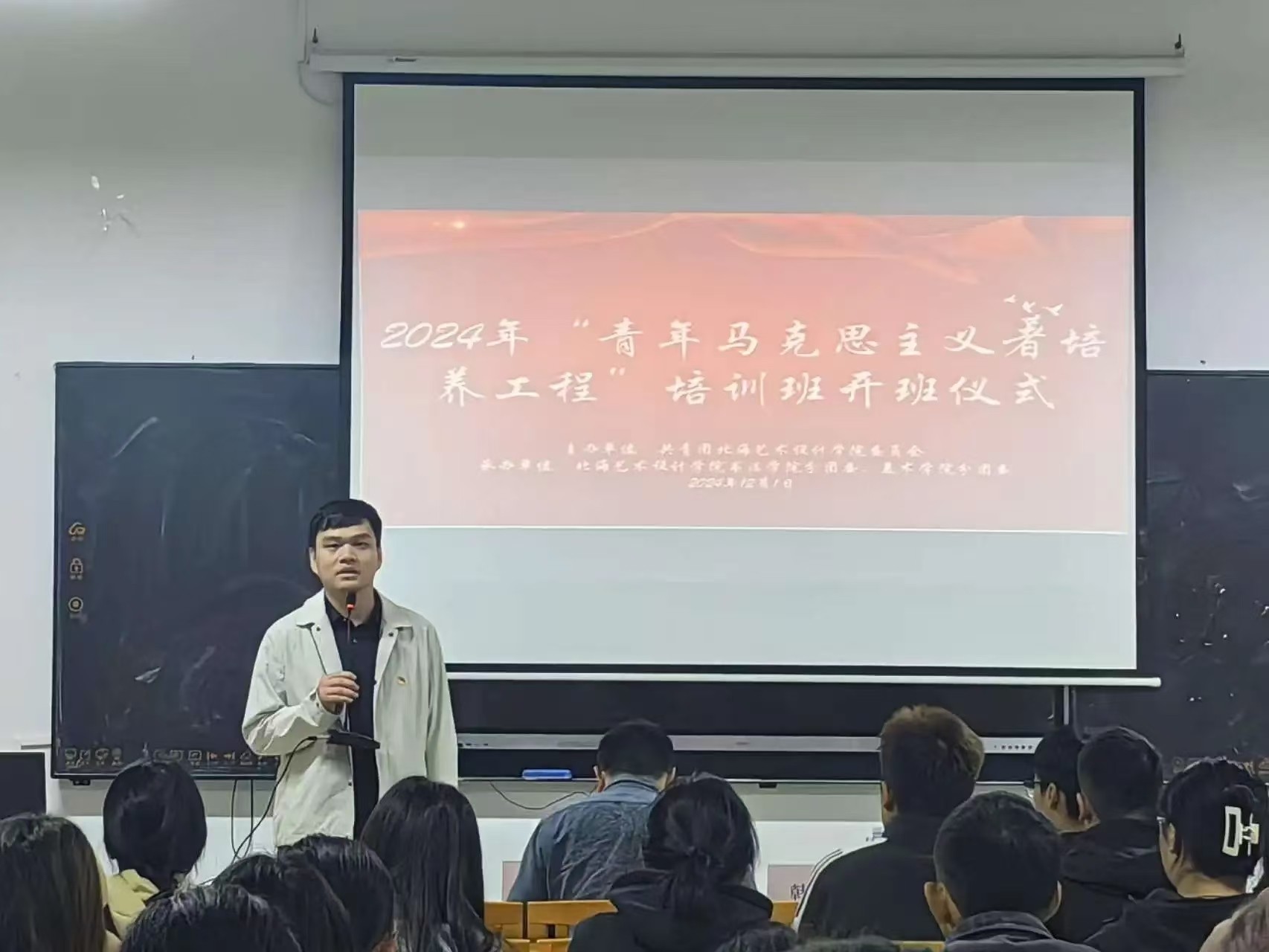 为深入贯彻习近平新时代中国特色社会主义思想,进一步加强对青年大学生的思想政治引领,使各位青马学员成长为中国特色社会主义事业奉献的合格建设者和可靠接班人。12月1日,由书法学院与美术学院联合举办的2024-2025学年“青年马克思主义者培养工程”培训班开班仪式在西校区艺术楼314顺利举行。
