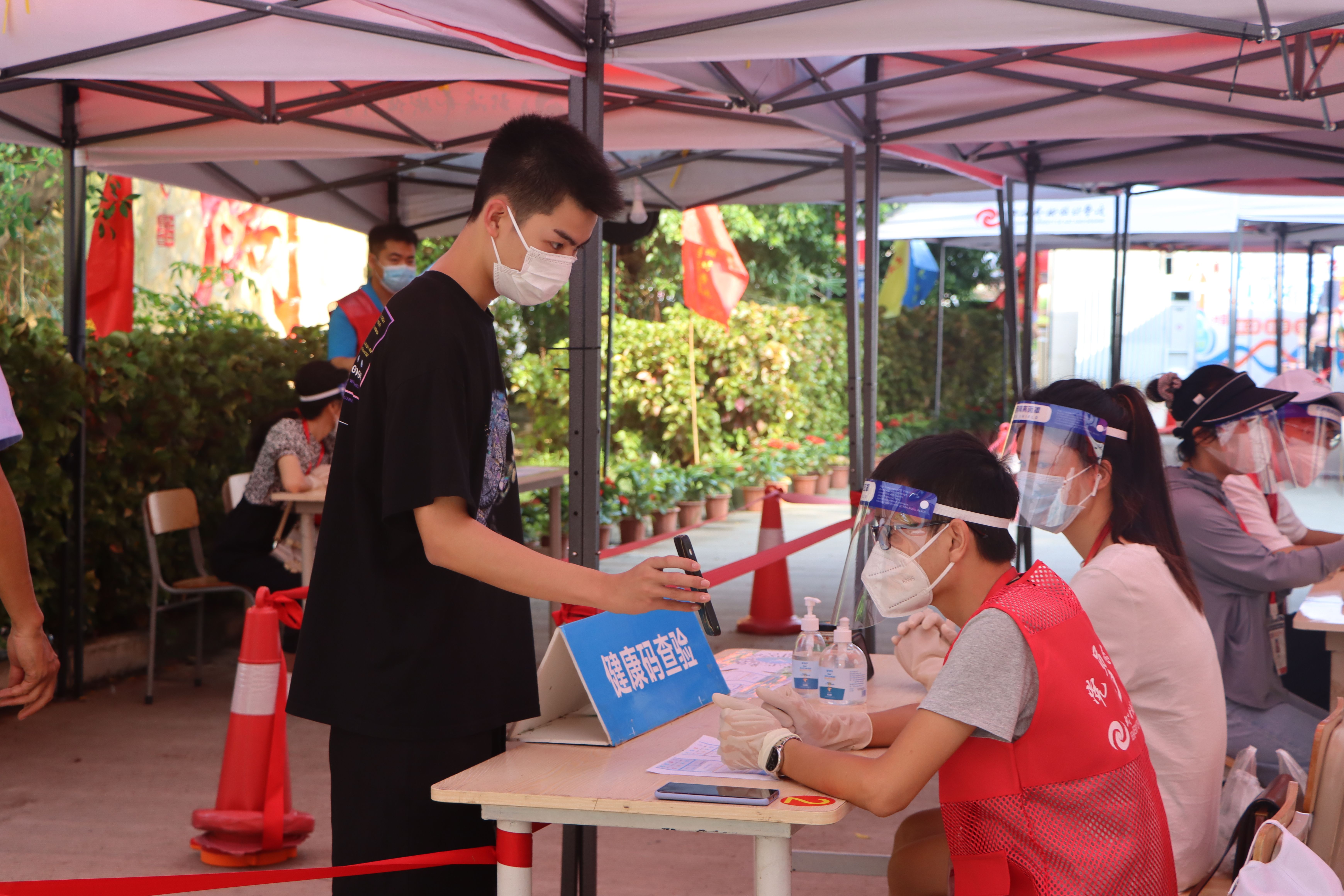 为确保新生入学工作的顺利开展,学校在北海火车站、北海福成机场均安排了迎新车辆。新生到达学校后,有序排队测量体温、查验录取通知书、广西健康码、通信大数据行程卡,以及对其行李进行消杀,方可入校。