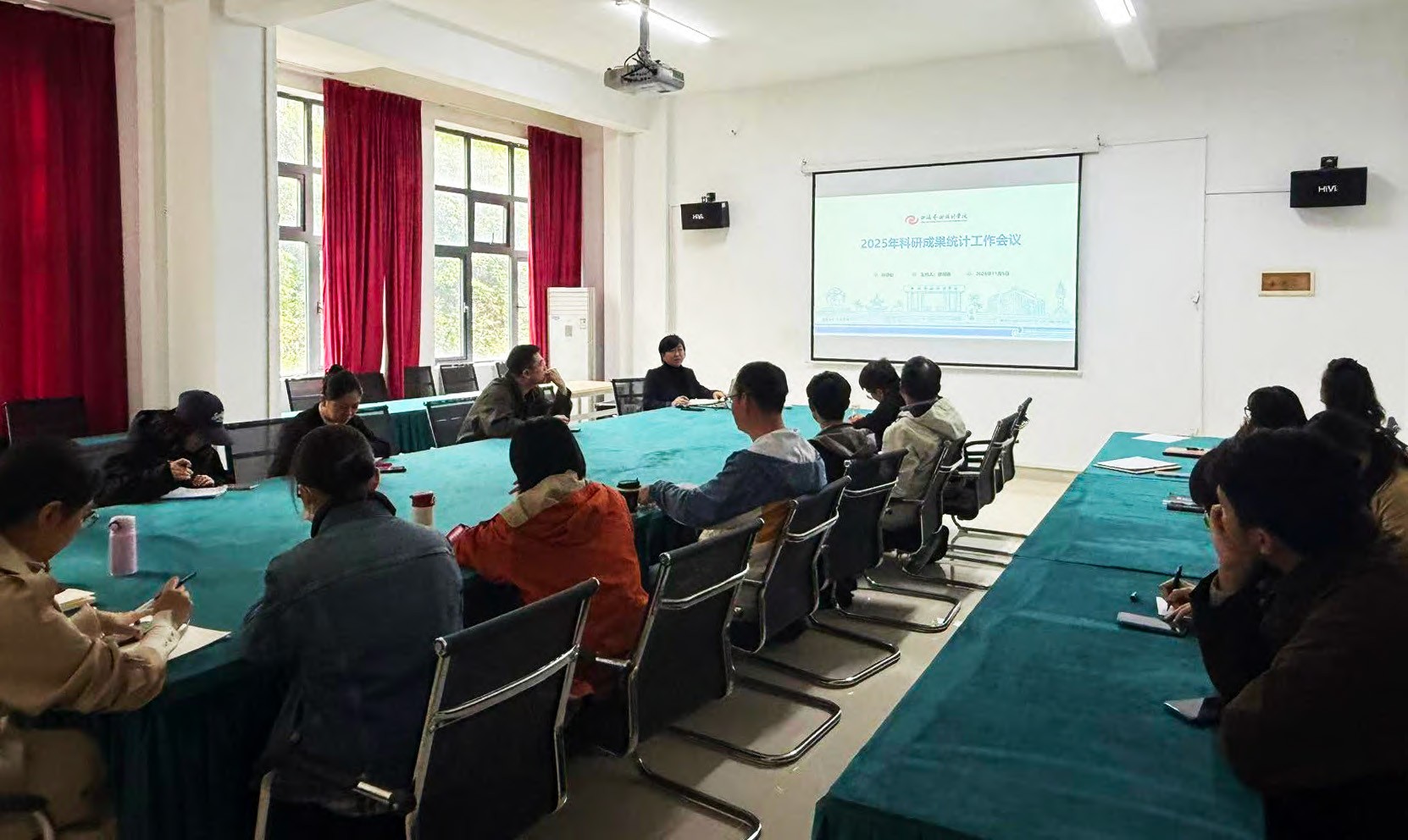 11月5 日上午,北海艺术设计学院科研处在行政楼 211 室召开 2025 年度科研成果统计工作部署会,各二级学院及相关部门负责人参会,科研处聂明丽副处长主持会议并讲话。