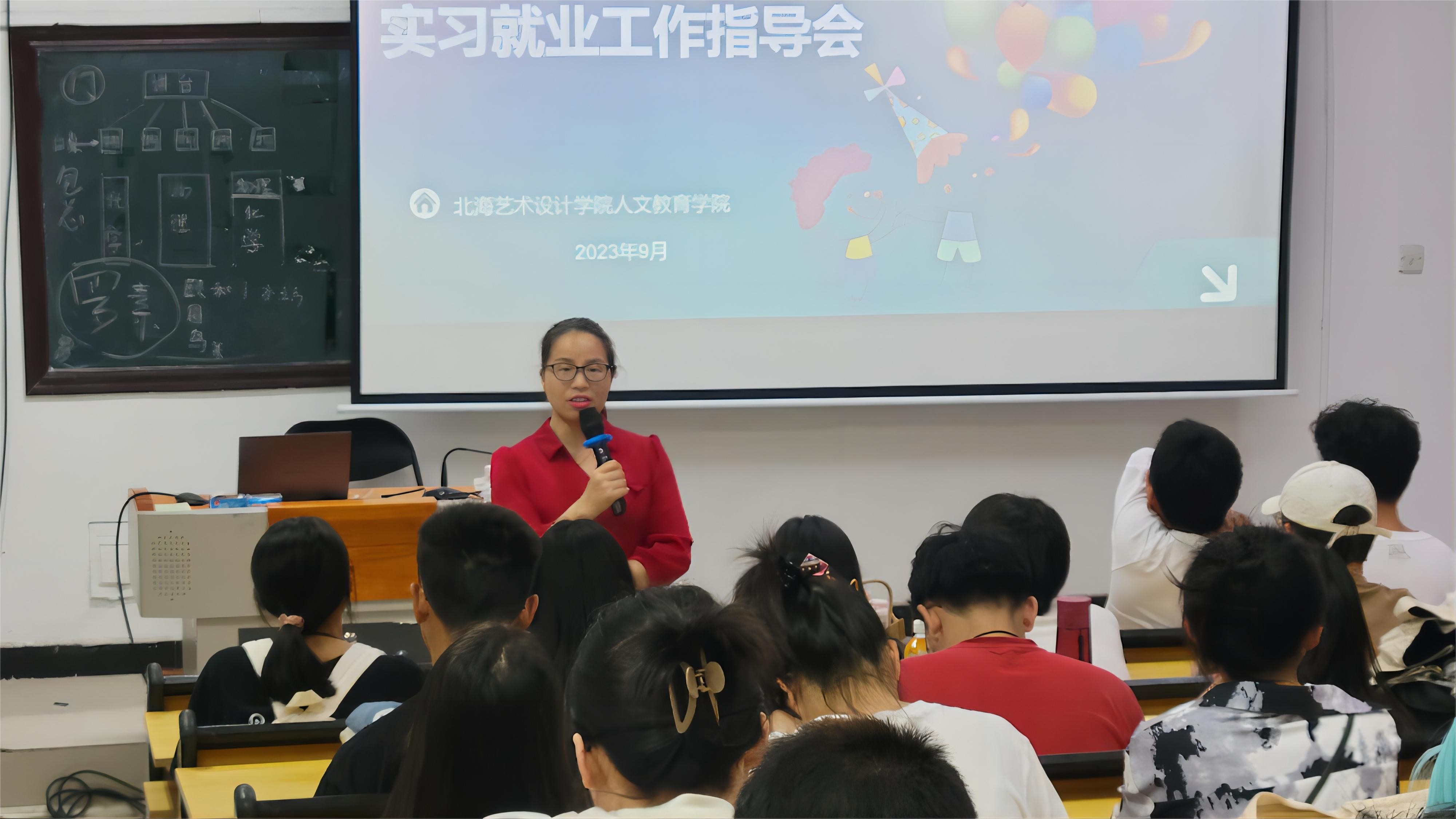 为切实做好我院2024届本科生论文指导、毕业实习与就业工作,调动学生毕业论文写作、实习与就业的积极性,9月14日,我院召开2024届毕业论文、实习就业工作动员大会。北海艺术设计学院总督学王斌、人文教育学院院长熊秀峰、副院长梁镨文出席此次动员会,人文教育学院2024届全体毕业生参加本次动员大会。会议由学院梁镨文副院长主持。