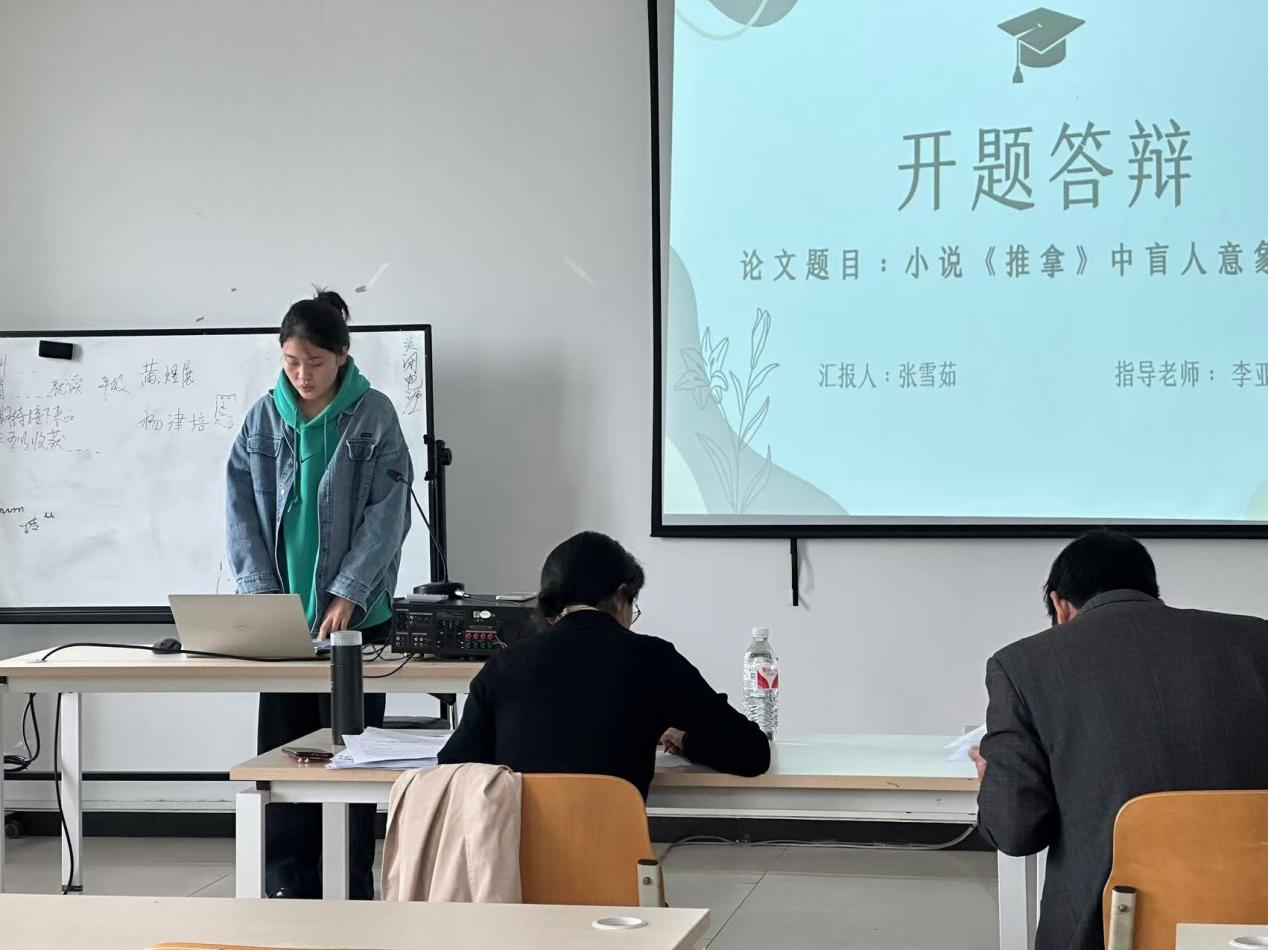 本次开题答辩组织得当、准备充分,取得了较好的效果。通过此答辩,不仅有效督促了学生在毕业论文撰写的进展,为教师和学生提供了一个交流的平台,有助于及时发现论文写作的存在问题确保研究方向的科学性和研究内容的深度为保障2025届汉语言文学专业本科毕业论文质量奠定了坚实的基础。(吕玉莹/摄)