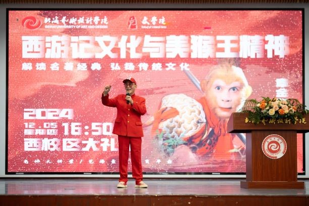 2024年12月5日,一级演员、中国著名表演艺术家六小龄童——章金莱老师受邀来到北海艺术设计学院,为全校师生带来主题为西游记文化与美猴王精神精彩讲座。本次讲座由文学院主办,常务副院长梁镨文主持。