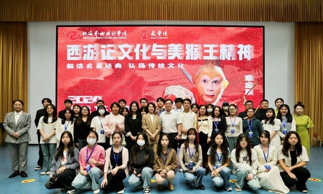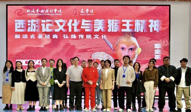 自新生入学后,我校都会向新生发放的全册四大名著,《西游记》也就成为了北艺学子的必读书目在一年级的通识课阅读与写作课程中,首篇选文就是出自《西游记》的《美猴王拜师学艺》,寓意着每位北艺新生如同孙悟空一般,怀揣着对知识的渴望和对未知世界的探索,踏入学术与艺术的殿堂,开始自己的“取经”之旅。这不仅是对经典的致敬,也是北艺人中国传统文化的坚守与传承此次讲座更是将齐天大圣孙悟空的形象烙印在每一位现场观众的心中。章金莱老师表示“每一个人,尤其是年轻人,更多去关注我们中国优秀的传统文化,从孙悟空身上汲取一种猴王精神,只有苦练七十二变,才能笑迎八十一难!通过此次讲座,北艺师生不仅重温了《西游记》的经典故事,更深刻理解了孙悟空精神的现实意义。同学纷纷表示,将带着从讲座中获得的新视角与新见解重读《西游记》,进一步体会其中所蕴含的文化内涵和精神力量。