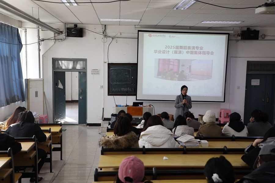 随后,中期检查小组在阶梯教室召开了“2025届舞蹈表演专业毕业设计(展演)中期集体指导会”,会议围绕本届毕业设计(展演)中期中存在的突出问题展开,并结合了往届毕业设计(展演)案例,指导学生们避免常见疏漏,为同学们明确了方向、厘清了标准,确保材料逻辑清晰、内容完整,也为后续展演的高质量推进奠定了坚实基础。