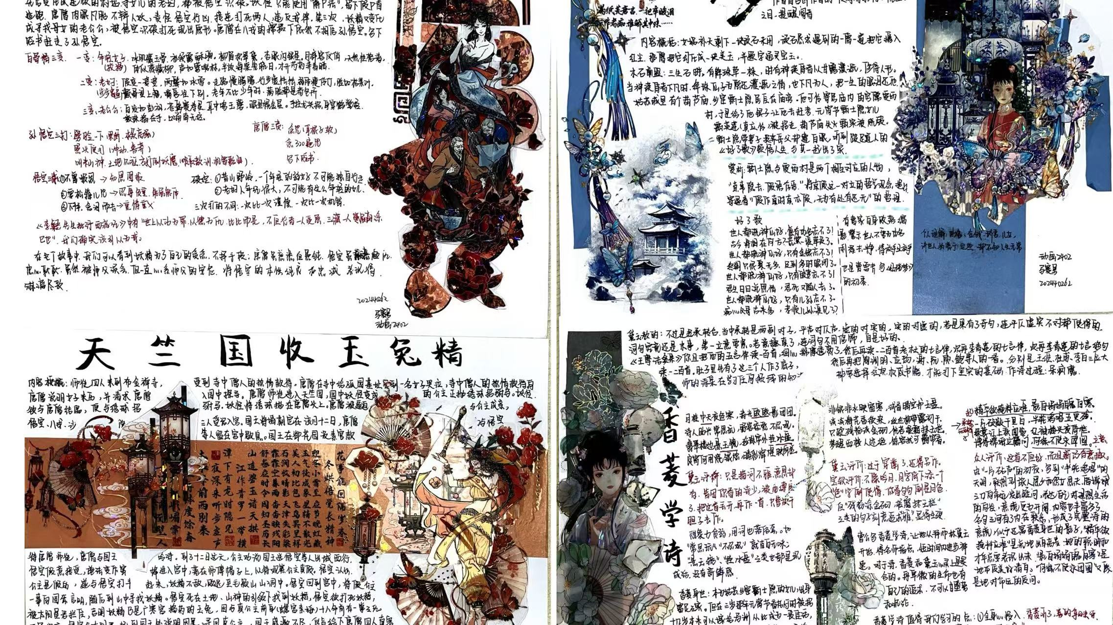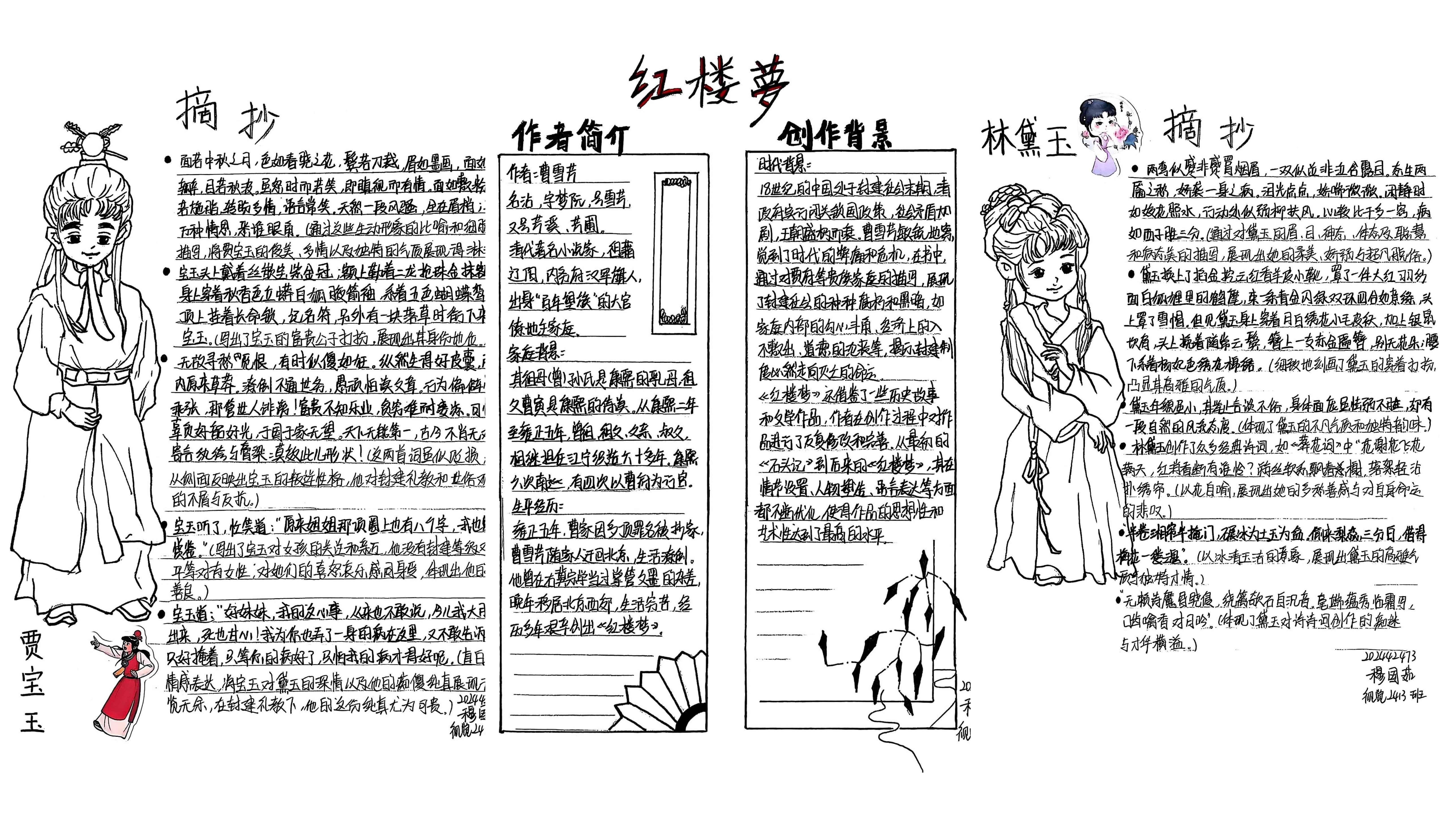 本次大赛已构建起“全员参与、全程用心、全面展示”的特色育人模式,不仅融入文学院课程体系之中,更是传承中华优秀传统文化的重要载体。大赛将艺术思维与创新意识融入经典解读,实现跨学科融合创新。文学院以四大名著读书笔记大赛为抓手,引导学生深入研读经典,传承中华优秀传统文化,形成独立思考的学术品格,培养具有深厚人文底蕴的人才。以下是部分优秀作品展示: