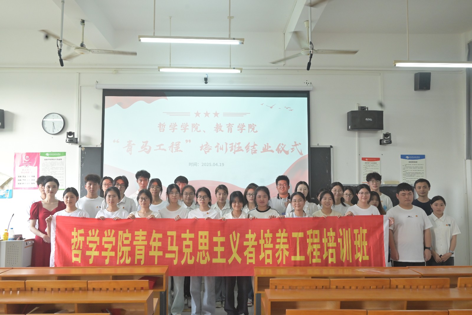 2025419日,我校教育学院、哲学学院于东区觉悟楼 402 室举办的第一期青年马克思主义者培养工程结业仪式圆满落幕。哲学学院党支部书记谢伟、教育学院团总支指导教师陈美霖出席结业仪式,两学院团员及学生干部共同参加活动。