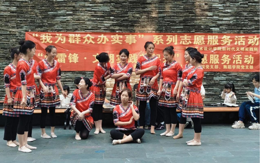 活动当天,阳光正好,志愿服务活动正式拉开帷幕。舞蹈学院的同学们带来了精心准备的舞蹈节目。他们身着绚丽多彩的民族服饰,轻盈的脚步、优美的姿态,生动地展现了各民族独特的文化魅力,为社区居民带来了视觉与听觉的双重享受。