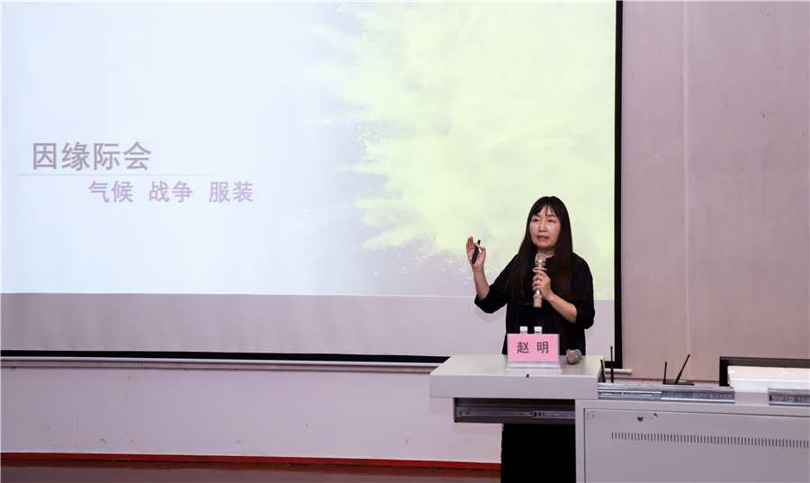 赵明教授谈到,服装是文化载体,中西方的不同文化决定了战争的特征,表达出不同的服饰特征。同学们要在服饰文化中勇于探索,勇于发现。