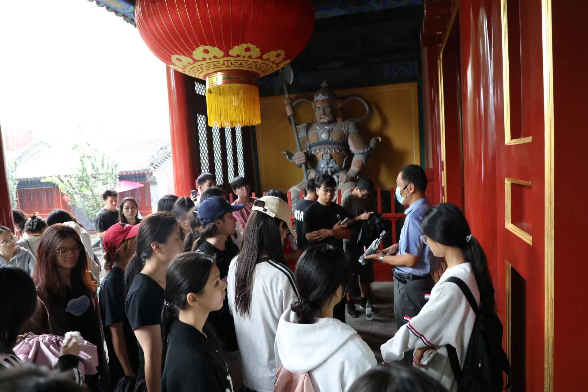 随后,师生一行前往北京民俗博物馆。这座依托东岳庙古建筑群建立的博物馆,集中展示了老北京的民俗文化与生活智慧。从传统节庆习俗、民间手工艺,到老北京的衣食住行,丰富的展品让学生们仿佛穿越时空,真切感受到民俗文化的独特魅力。学生们带着文学学习的视角主动思考看到传统节庆相关展陈时轻声讨论曾在文章中读到的民俗描写;观察民间手工艺会认真记录细节,试图将其与文学作品中的生活场景对应这种带着学习目的的探索,让民俗文化不再是遥远的符号,而是化作了理解文学、感知生活的生动教材,也让“文学源于生活”的认知在实践中愈发清晰。