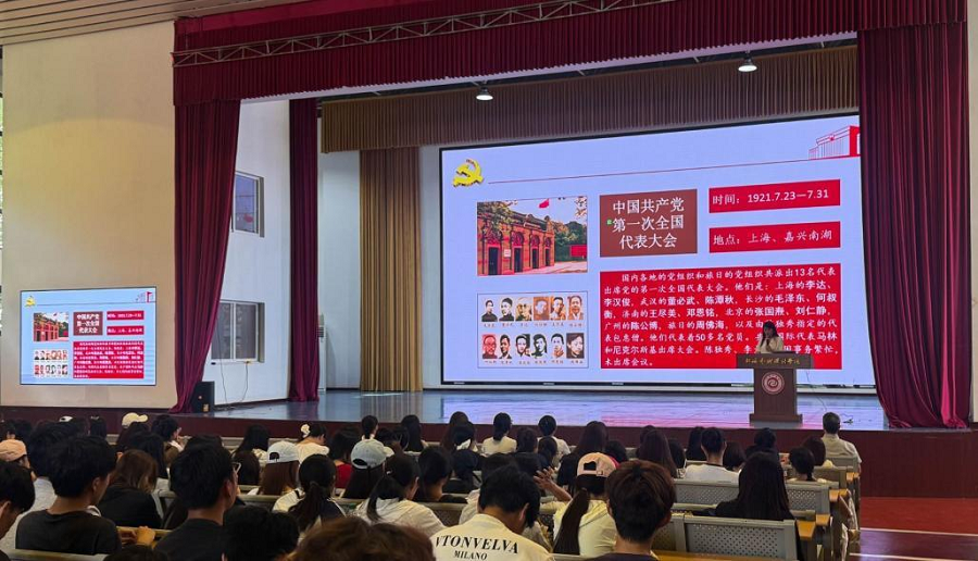 学院党支部书记宋慧敏在大会上把理想信念教育、爱国主义教育与党的 基本知识相结合,助力学生深入了解红色文化的内涵与价值,增强他们对红色文 化的认同感和归属感。