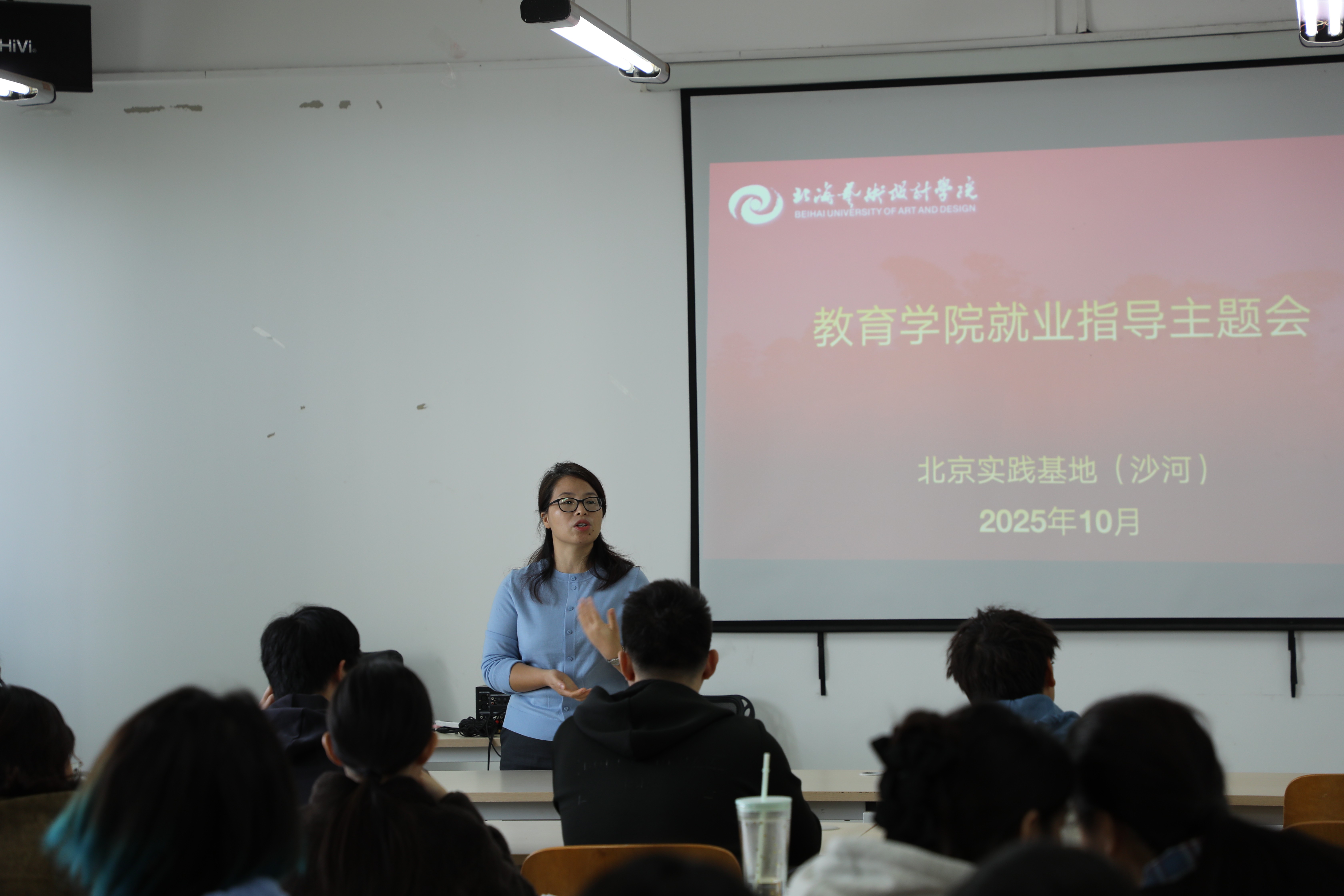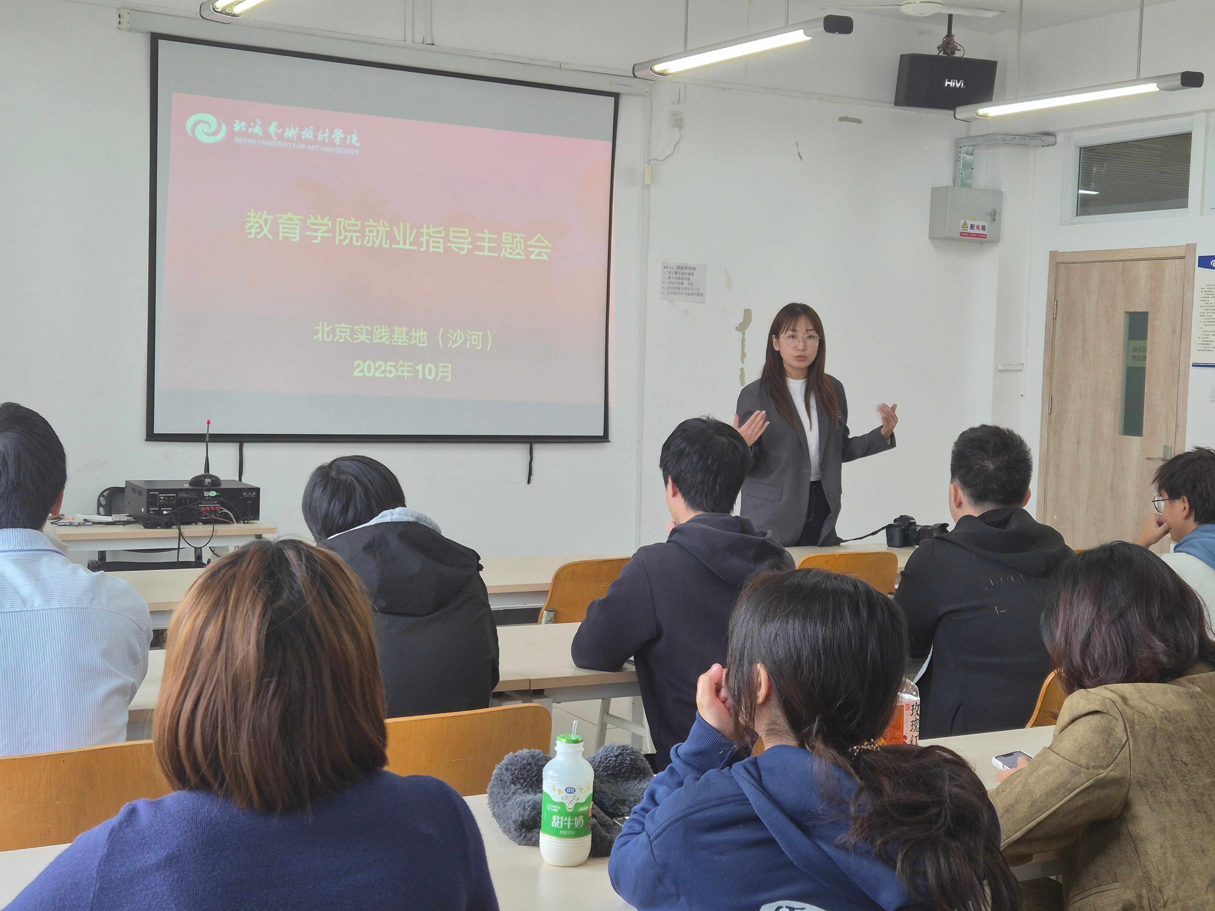 2025年10月15日,为切实解决2026届大四学生毕业论文困惑与实习就业难题,教育学院在北海艺术学院北京实践基地沙河励行楼203教室召开毕业实习就业指导工作。教育学院院长熊秀峰主讲本次的指导会议,北京实践基地沙河副主任严腾、教育学院教务办主任黄海林、学前教育教研室主任覃思、学前教育专业教师雷蕊,参加出席本次会议。通过“政策引导+岗位对接+面试帮扶”三维联动,为学生未来发展注入强劲动力。
